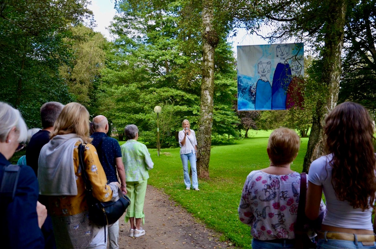 Es ist eine ausgesprochen aufwendige, ehrenamtliche Tätigkeit der Engagierten, und der Vorfall im Schleidpark bringt sie aus dem Tritt. »Das Ergebnis monatelanger ehrenamtlicher Arbeit auf diese Weise zu verlieren, ist ein Schlag ins Gesicht. Es entsetzt nicht nur unser Team, sondern auch die teilnehmenden Künstlerinnen und Künstler«, so Helma Schmitz, die in diesem Jahr täglich einen Kontrollgang über die Ausstellung gemacht hat. Und die Tatsache, dass die Diebe nebenher alle Ankündigungsplanen im öffentlichen Raum und mehrere hundert bereitliegende Broschüren mitgenommen haben, macht das Ganze nicht verständlicher.
