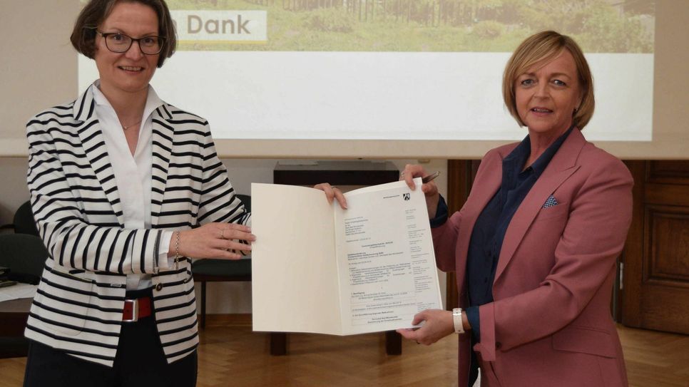 Ina Scharrenbach, Ministerin für Heimat, Kommunales, Bauen und Gleichstellung des Landes Nordrhein-Westfalen, hat im Rahmen ihrer Tour durch das rheinische Revier auch Station in Bad Münstereifel gemacht. Im Ratssaal der Stadtverwaltung überreichte die Ministerin zwei Zuwendungsbescheide an Bürgermeisterin Sabine Preiser-Marian.