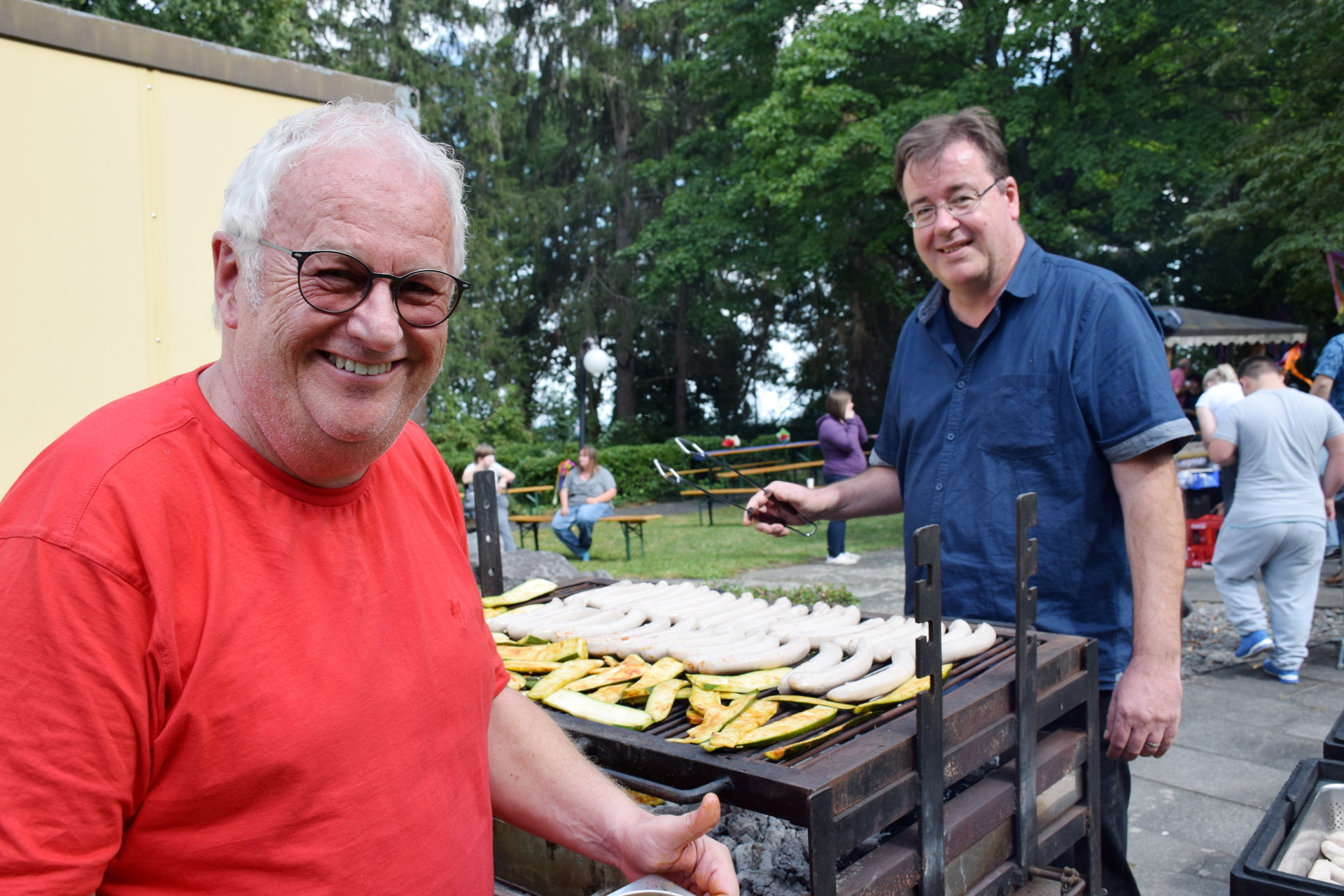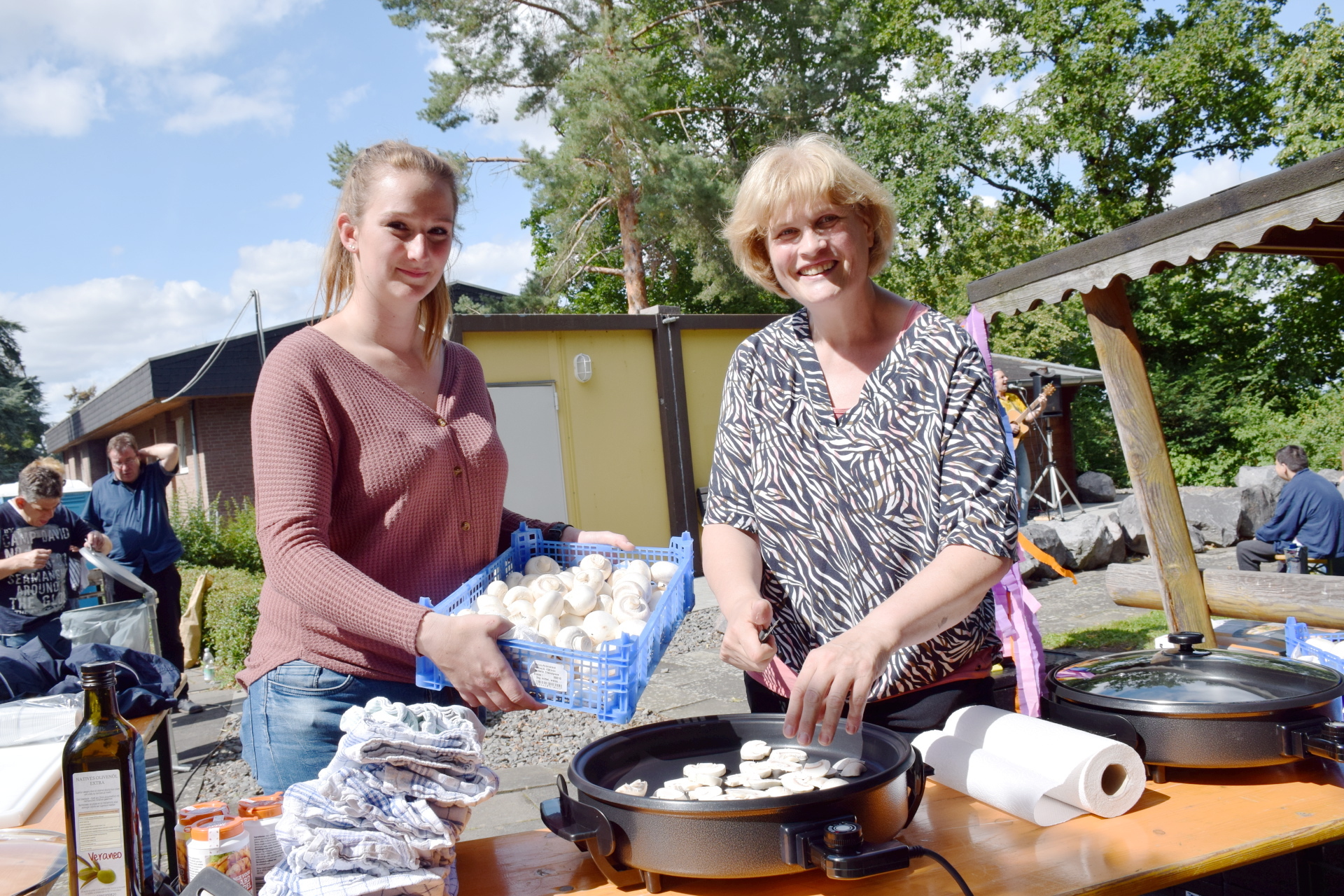 Mit der besonderen Performance des allseits beliebten Costa-Cordalis-Hit „Anita“ begeisterten und „rockten“ sie die Gäste. Unter den großen ausladenden Buchen, deren Äste mit Krepppapier bunt geschmückt waren, ließen es sich die Menschen gut gehen. Neben Gegrilltem gab es auch eine frisch gedünstete und lecker gewürzte Pilzpfanne - das Leibgericht der Bewohner. „Pilze lieben sie“, so Lebenshilfe-Mitarbeiterin Frauke Schmitz-Brenner, die mit Kollegin Pauline Lenz das Fest federführend organisierte.