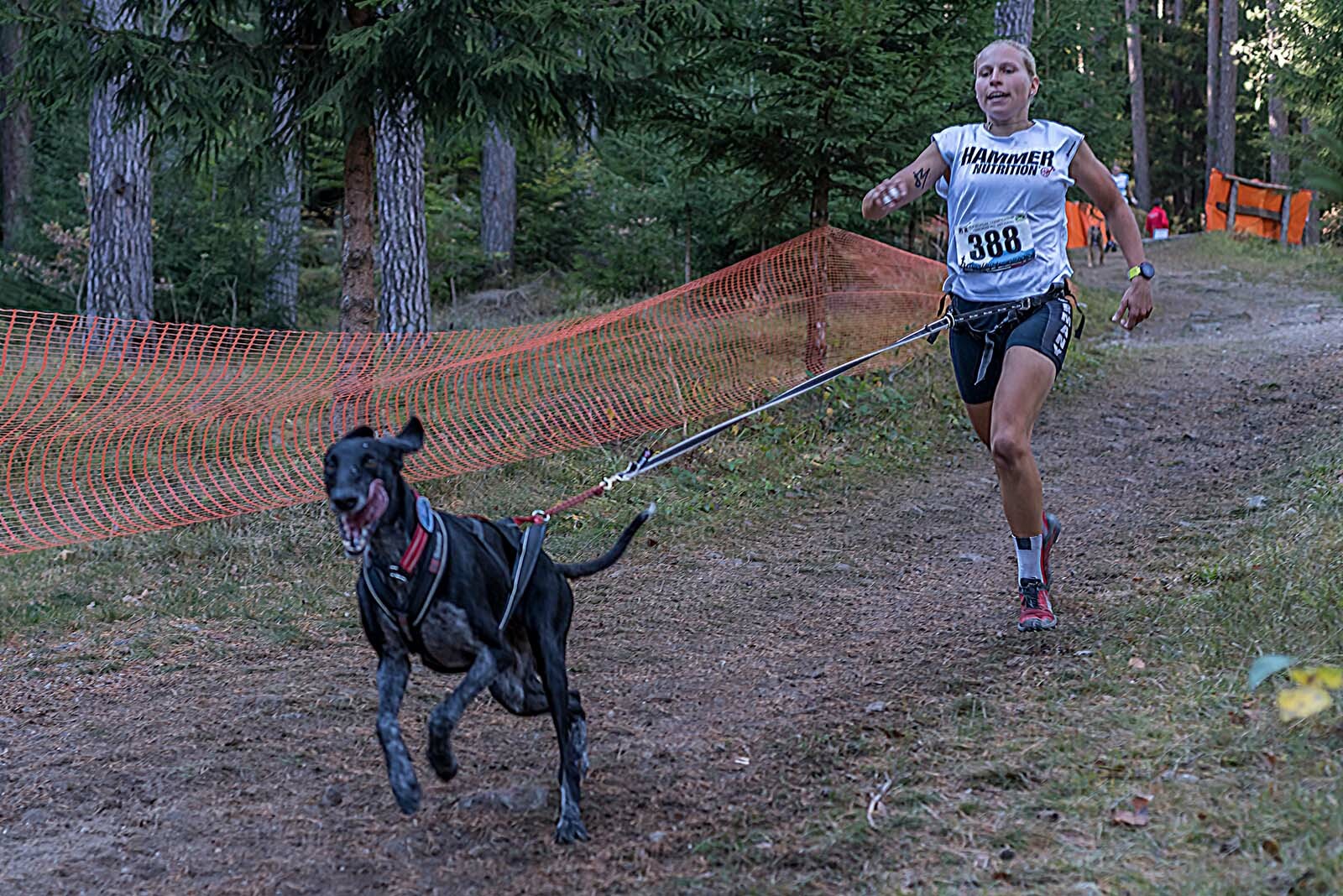 Sie ging dieses Mal mit den beiden sechseinhalb Jahre alten European Hounds Lisa und Schoko in der Kategorie Canicross und Bikejöring an den Start. Es galt, sich in einer der stärksten Klassen auf einer anspruchsvollen Strecke zu behaupten. Bei diesem Format, werden an zwei Tagen eine ausgewählte Strecke gefahren und die jeweiligen Zeiten am Ende zusammengerechnet. Wer insgesamt die beste Zeit erreicht, gewinnt. Der Wettkampf begann jeweils mit einem Bikejöring-Rennen, bei dem eine sehr technische Strecke von 5.5 km über Wiesen und Wald bewältigt werden musste. Am ersten Tag hatte Jule Prins nicht ganz so viel Glück. Trotz eines genialen Laufs ihrer Hündin Schocko kostete eine Blockade ihres Hundes auf dem Trail Zeit. Folge: Sie wurde am ersten Tag um 10 Sekunden zurück geworfen und landete auf Position zwei.