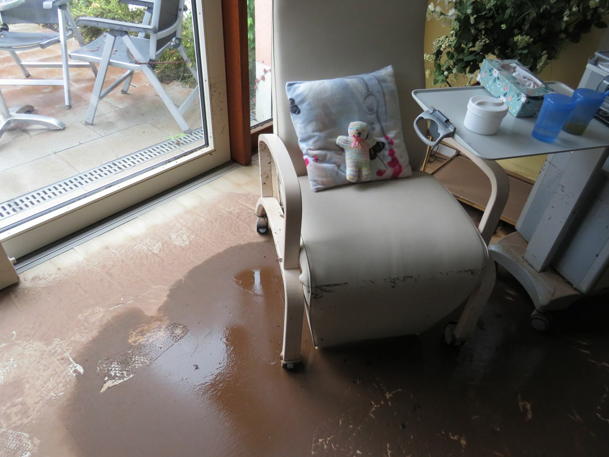 Schwer getroffen wurde auch das Theodor Roevenich Haus, eine der beiden Einrichtungen des Seniorenzentrums der Stiftung. Unter- und Erdgeschoss standen unter Wasser. Noch in der Nacht wurden die Bewohner des Erdgeschosses in die obere Etagen evakuiert. Doch nach dem Unwetter fehlten Strom und Wasser, so dass eine adäquate Versorgung nicht mehr gewährleistet werden konnte. Schweren Herzens entschied sich die Leitung die Bewohner zu verlegen. Auch hier konnten einige von ihnen im Marien-Hospital Euskirchen unterkommen. Andere wurden von ihren Familien oder von Pflegeeinrichtungen aus Daun, Köln, Bonn und sogar Düsseldorf aufgenommen. Ein massiver Einschnitt in das Leben der Bewohner und ein Abschied auf Zeit, der auf beiden Seiten zu einigen Tränen führte - trotz der unendlichen Dankbarkeit für die unkomplizierte und hervorragende Unterstützung.