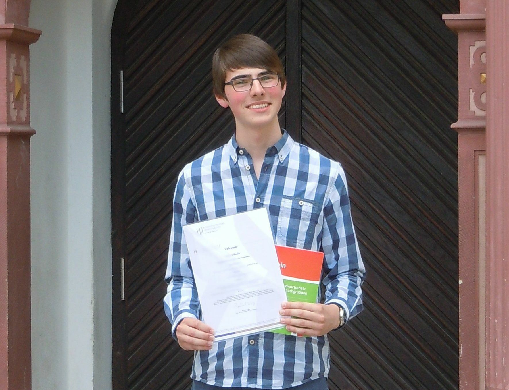 Als in Paderborn die Landessieger des Fremdsprachenwettbewerbs Latein geehrt wurden, musste sich Linus Rode lange gedulden. Die Veranstalter hatten getreu dem Motto »das Beste zum Schluss« entschieden, die sechs besten Lateinschüler NRWs als Höhepunkt der Veranstaltung am Ende zu ehren. Umrahmt von einem vielfältigen Programm, das zeigte, wie lebendig Latein immer noch sein kann, wurden zunächst alle Gruppen und die im Einzelwettbewerb Zweit- und Drittplatzierten auf die Bühne gerufen, um ihre Preise in Empfang zu nehmen. Schließlich durfte dann auch Linus unter großem Beifall den Lohn für seine Bemühungen in Empfang nehmen: Neben einer Urkunde, einem Geldpreis und verschiedenen Sachpreisen, wie beispielsweise einer Münze aus dem vierten Jahrhundert nach Christus, erhielt er die Einladung für die nächste Runde, das bundesweite Sprachenturnier in Hennef.
