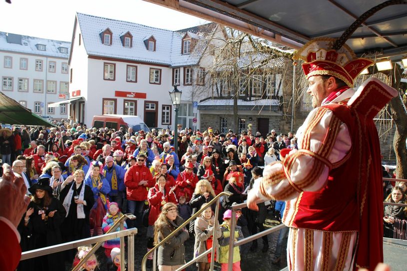 Tolle Stimmung bei der Rathauserstürmung in der Kurstadt. Seit 2015 war der Sturm auf das Rote Rathaus für die Jecken in Bad Münstereifel ausgefallen.