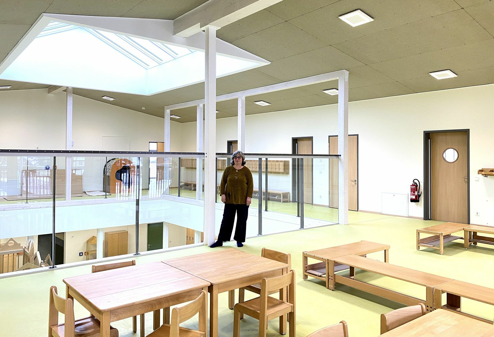 Birgit Lesch: Wir freuen uns sehr, dass wir auch das Obergeschoss nutzen dürfen. Es sind sehr schöne, große, neue Räume entstanden, die uns und den Kindern vielfältige Möglichkeiten zur Ausgestaltung und Nutzung bieten. Die Kinder sind schon sehr gespannt, besonders da sie die Baumaßnahmen hauptsächlich akustisch mitbekommen haben und erst seit Januar den oberen Bereich einsehen können. Aber auch im Erdgeschoss hat sich einiges verändert. Die Räume wirken durch die neuen Akustikdecken viel heller und der neue Boden und die angepassten Wandfarben sorgen für eine wohlige Atmosphäre.