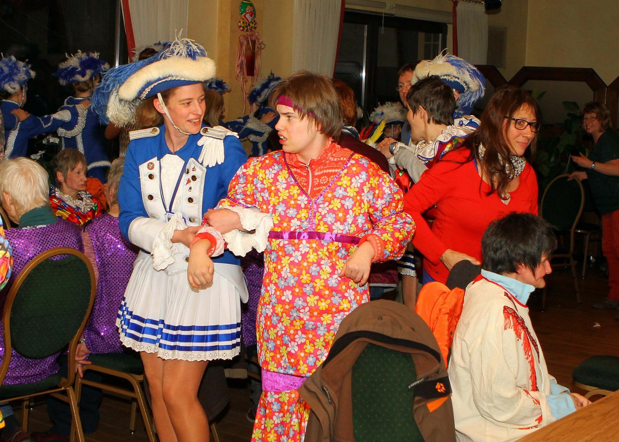 Familie Friedel sowie Antoinette Mayer gemeinsam mit ihrem Sohn Markus hatten die Einladung zu einem karnevalistischen Nachmittag mit Essen und Trinken ausgesprochen . 28 Menschen mit Handicap waren der Einladung gefolgt. Normalerweise wären es fast 40 gewesen, aber viele mussten krankheitsbedingt passen. Auch die Karnevalsgesellschaft »Blau-Weiß« Schleiden hatte nicht lange gezögert und war mit Prinzenpaar und Tanzgarde zum karnevalistischen Nachmittag gekommen. Nach einer Tanzvorführung der Garde mischte sich diese unter das Sitzungsvolk und zog mit einer Polonäse durch den Saal. Das war sicherlich für die meisten Besucher der Höhepunkt des Tages. »Wir sehen uns an Weiberfastnacht wieder. Denn wie in jedem Jahr werden wir euch dann wieder besuchen«, versprach KG-Präsident Norbert Niebes. Text und Foto: Paul Düster