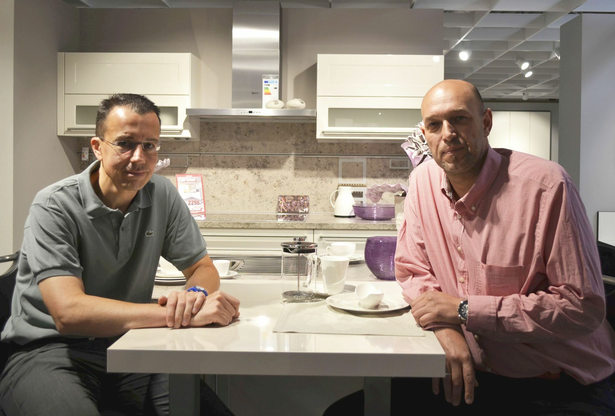 Firmenchef Andreas Brucker (v.li.) und der stellvertretende Abteilungsleiter Gernot Zass informierten über die neue Küchenausstellung. mn-Foto