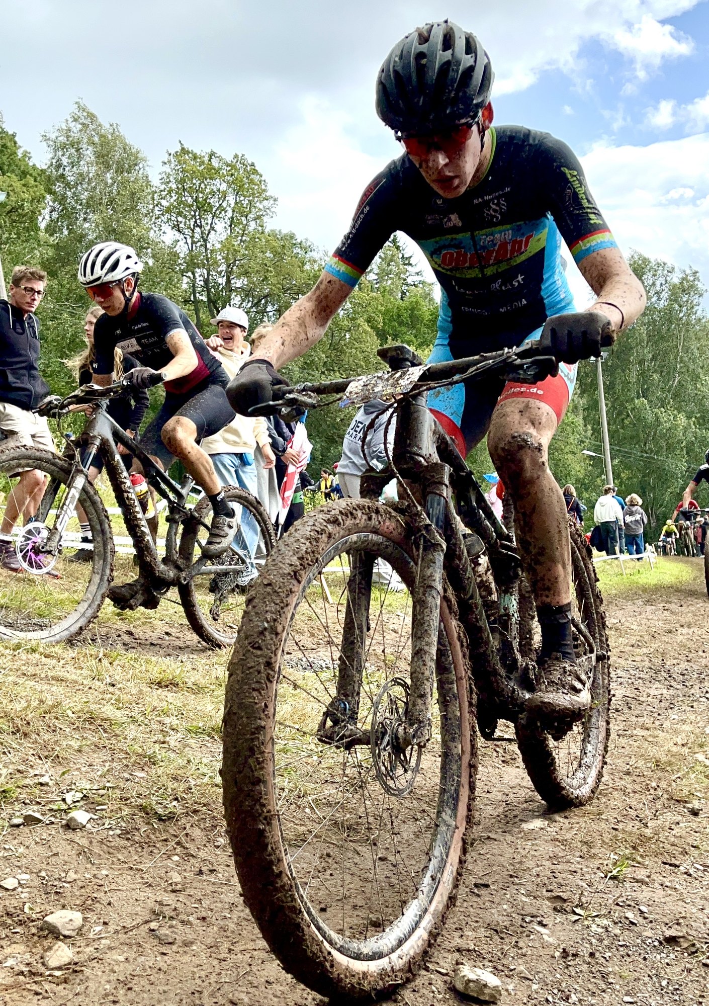 Letzten Herbst schon bildete sich zusammen mit Florian Werres (aus Nettersheim/Team Oberahr), Jola Aelken und Johannes Klage (aus Haltern am See/ATV Haltern) ein Team, um an der diesjährigen MTB-Europameisterschaft vom 02. bis 06.08. in Huskvarna/Schweden teilzunehmen zu können. Da alle dem NRW-Landeskader angehören, war der Team-Name schnell gefunden: NRW-Racing Team. Die Arena am Berg Huskvarna war im Laufe der Jahre Austragungsort einiger schwedischer, nordischer und europäischer MTB-Meisterschaften und so war alles sehr gut organisiert und durchdacht. Die Strecke über Felsblöcke, flowige und wurzelige Trails, Steinfelder und einem anspruchsvollen Anstieg auf den Slalomhügel bot zudem eine herrliche Aussicht auf den Vätternsee. 781 Teilnehmer aus 28 Nationen starteten am Dienstag bei schönstem Wetter in den Klassen U 15 und U 17 mit dem Einzelzeitfahren (ITT). Auf dem 800 m langen Rundkurs erreichte Florian Platz 87 von 295. Mittwoch fuhr jedes Teammitglied in der Staffel (XCR) jeweils eine Runde auf der 4,2 km langen XCO-Strecke und erreichte Platz 64 von 142 in der Teamwertung. Donnerstag fuhren die jeweils Schnellsten 45 aus dem ITT um den Titel des Europameisters im Shortrace (XCC), Freitag starteten die jüngeren Jahrgänge beim XCO-Rennen. Reichlich Regengüsse verwandelten die Strecke ab Donnerstag in eine Matschpartie und zur Sicherheit der Fahrer wurden gleich zwei A-Linien gesperrt. Zum Abschluss startete Florian am Samstag von Platz 60 im XCO-Rennen. Im Trubel des Startloops verlor er viele Plätze, von denen er einige wieder herausfahren konnte, am Ende wurde es dann Platz 77 von 154. Insgesamt war es ein tolles Erlebnis für alle Fahrer, Betreuer und Zuschauer auf einer Top-Strecke in grandioser Landschaft!