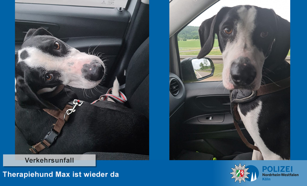 Ein aufmerksamer Spaziergänger sichtete den an der Pfote verletzten Mischling am Montagnachmittag, etwa zwei Kilometer von der Unfallstelle entfernt, an einer Böschung neben der Autobahn und alarmierte die Polizei. Dass nach dem Hund bereits gefahndet wurde, stand schnell fest, da die Polizisten, die den Unfall am Sonntag aufgenommen hatten, im Dienst waren. Dank Leckerchen fasste Max Zutrauen und ließ sich ohne Gegenwehr in den Vito tragen. Nach sicherer Identifizierung ließen die Polizisten sich eine Dienstreise nach Neuss genehmigen und brachten Max nach Hause. Schon bald soll er seinen "Dienst" als Therapiehund in einer Kindestagesstätte antreten.