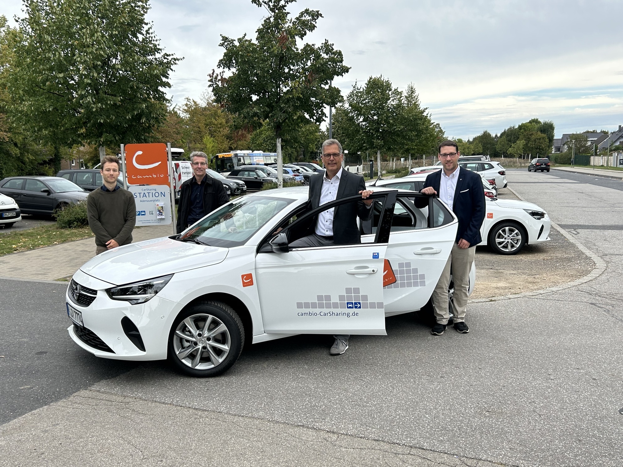 Auch in Zülpich gibt es ab sofort wieder ein Carsharing-Angebot. Gemeinsam mit »Cambio Rheinland« konnte Bürgermeister Ulf Hürtgen jetzt gleich zwei neue Stationen offiziell eröffnen. Ab sofort stehen sowohl am Bahnhof (wegen der dortigen Umbauarbeiten zurzeit noch in der Duisburger Straße) als auch auf dem Adenauerplatz zwei Fahrzeuge für die zeitlich begrenzte Nutzung zur Verfügung.