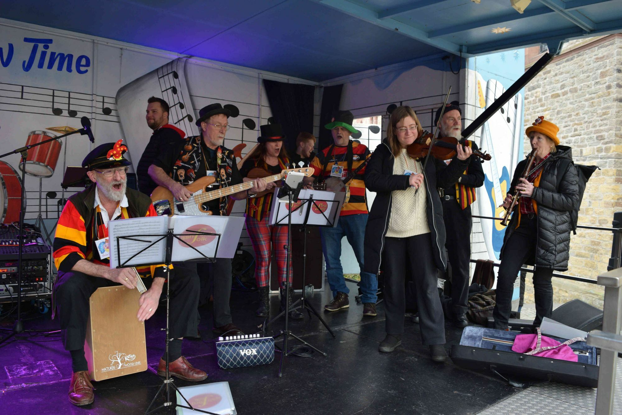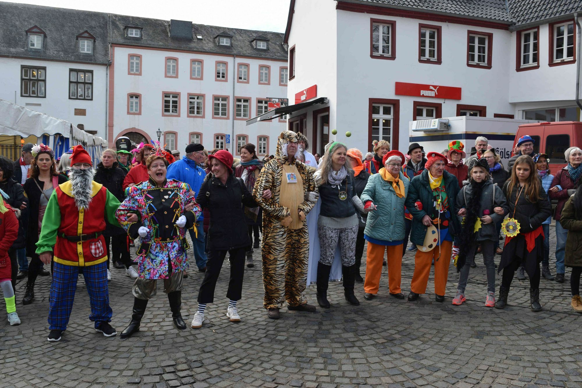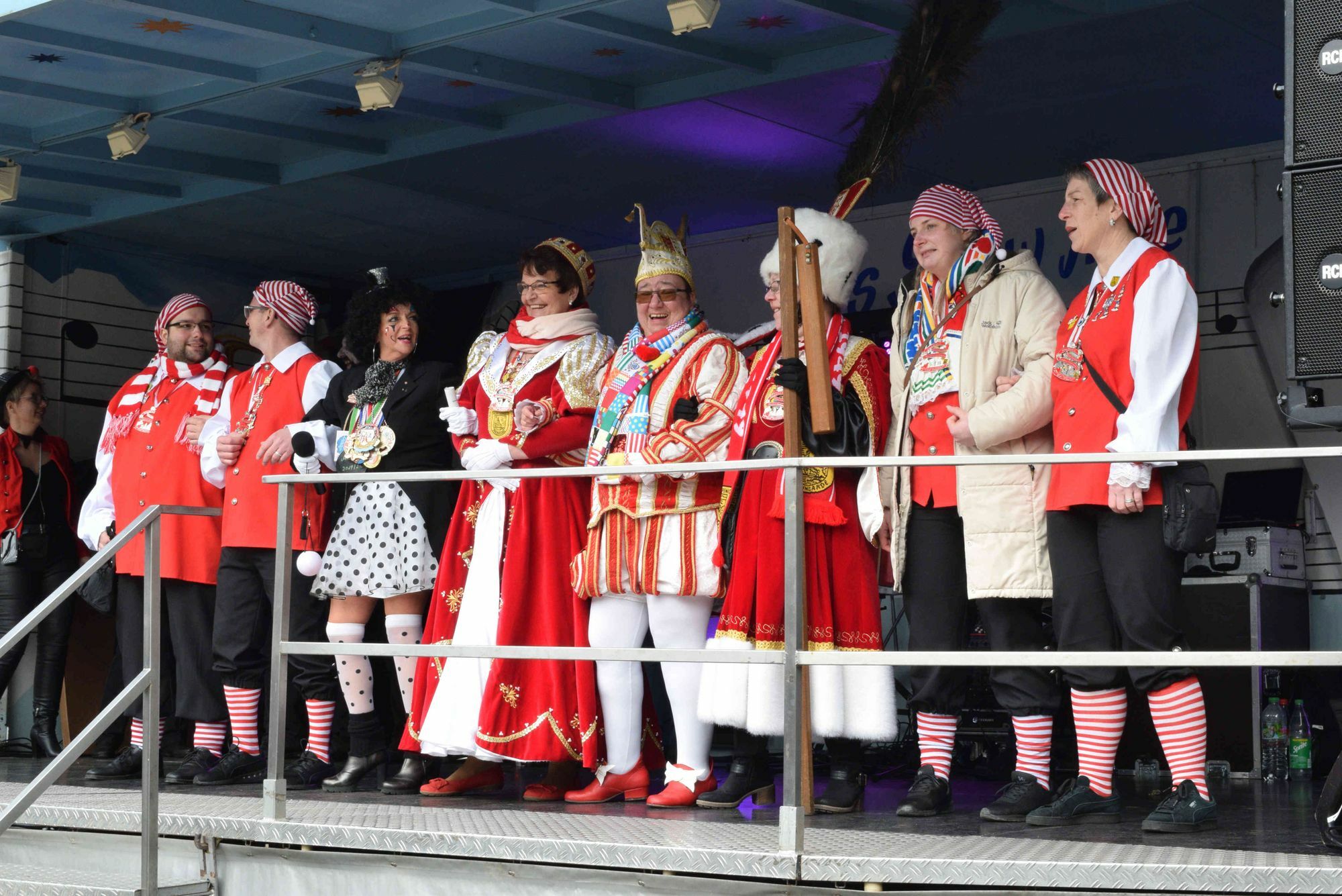 Freiwillig wollte Zirkusdirektorin Sabine Preiser-Marian den Schlüssel zum Rathaus aber nicht rausrücken. Die Karnevalisten mussten sich zuerst in einigen artistischen Disziplinen, wie Jonglieren oder Tanzen mit einem Hula-Hoop-Reifen mit der Bürgermeisterin messen. Zahlreiche Besucher feierten mehrere Stunden vergnügt auf dem Platz gegenüber des Rathauses. Auf der Bühne präsentierten sich Tollitäten und Karnevalsgeselschaften aus dem gesamten Stadtgebiet. Außerdem gab sich die englische Musikgruppe "Ashford Folk" ein Stelldichein mit dem Lied "Viva Colonia".