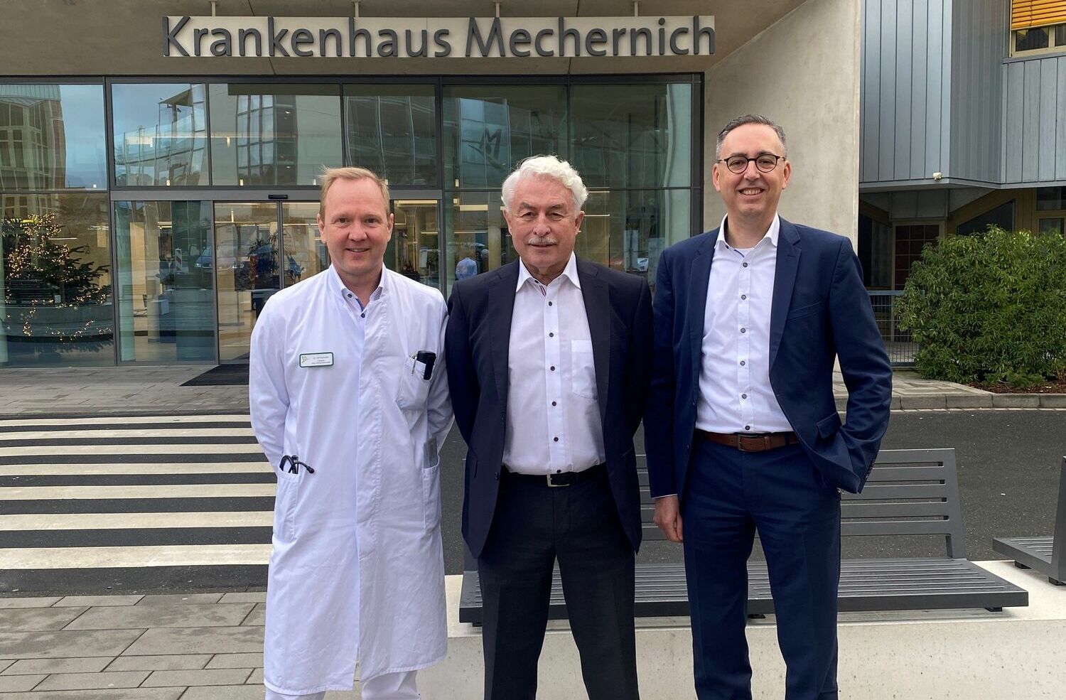 Diese Funktion geht nun auf Dr. Ulf Peter Schmidt über, der seit 2010 als Chefarzt die Klinik für Allgemein- und Viszeralchirurgie am Krankenhaus Mechernich leitet. Nach verschiedenen beruflichen Stationen in den Universitätskliniken Essen und Münster, dem Klinikum Herford sowie dem Kantonspital Baden in der Schweiz, zog es ihn 2009 nach Mechernich. Seither ist er in Kommern beheimatet und dem Krankenhaus treu verbunden.