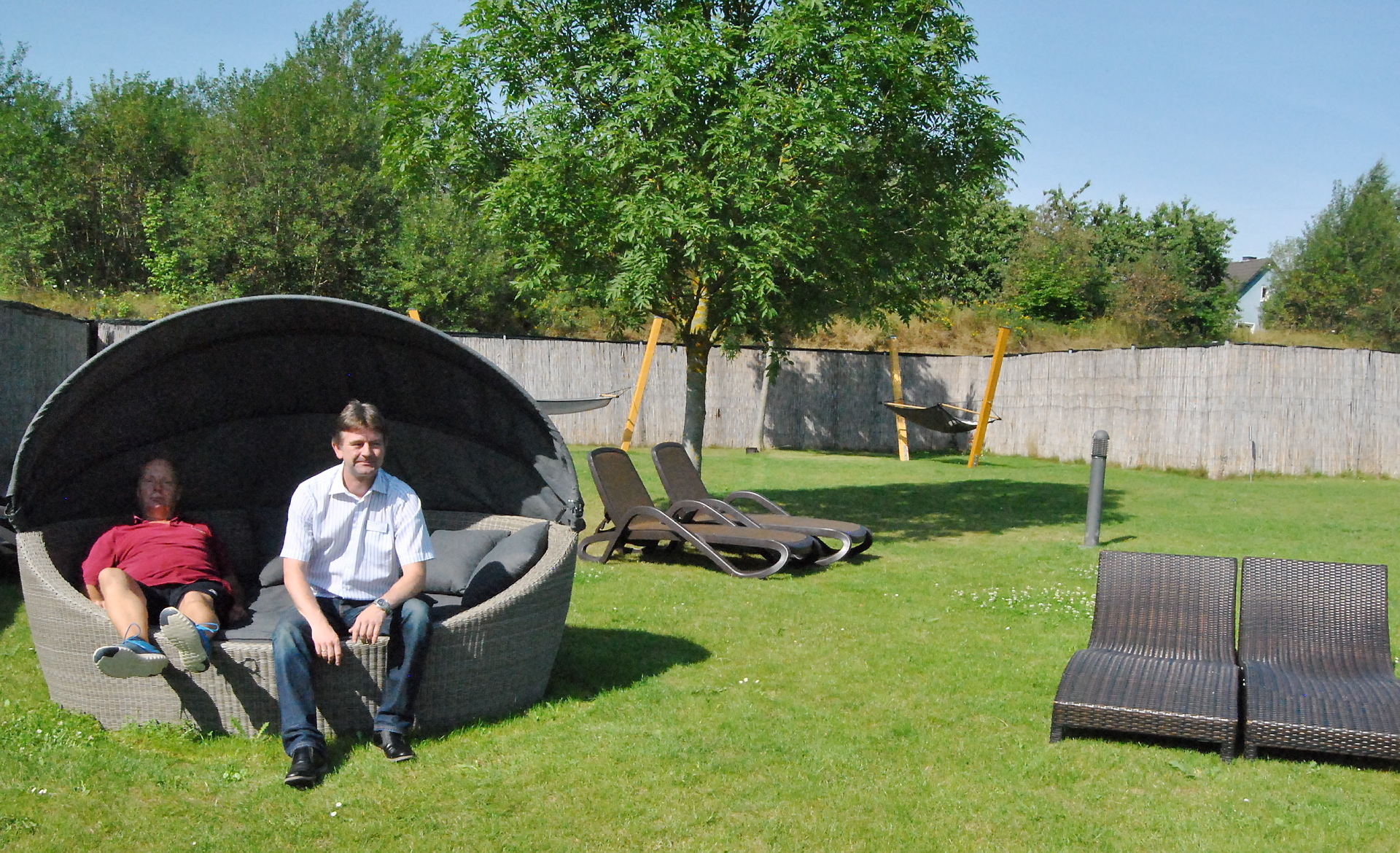 Neben der obligatorischen Großreinigung wurden sämtliche Anlagen im Bad, im Saunabereich und im Technikkeller gewartet, generalgereinigt und notwendige Reparaturarbeiten vorgenommen. Auch die Saunen wurden aufpoliert und überholt, in der Piha-Sauna dürfen die Gäste jetzt auf nagelneuen Bänken schwitzen. Neu ist auch die zum übrigen Ambiente passende rustikale Holzüberdachung der Außenduschen. „Zum einen sollte es jetzt nicht mehr vorkommen, dass im Winter die Duschen einfrieren. Vor allem aber können unsere Saunagäste nun vor Wind und Wetter geschützt duschen“, sagt Jörg Schaefer. Komplett erneuert und modernisiert worden sind auch die Duschen im Innenteil des Saunabereichs im Obergeschoss. Einige Verbesserungen gibt es auch auf den Liegewiesen im Saunagarten. Dort laden jetzt zwei Hängematten und zwei Sonneninseln zum Entspannen ein. Und für Schlecht-Wetter-Tage steht neuerdings ein überdachter Liegebereich zur Verfügung. Auch energetisch wurde an Optimierungen gearbeitet. Durch den Einbau eines dritten kleinen Blockheizkraftwerks und eines ergänzenden neuen Gaskessels wurde die Heizungsanlage überholt und hinsichtlich des Energieverbrauchs optimiert. Und wer im Eingangsbereich auf Kinder oder Freunde warten muss, kann das seit Neuestem in chilliger Lounge-Atmosphäre tun: Die etwas in die Jahre gekommenen Korbmöbel wurden durch trendige Rattansessel und -sofas ersetzt. „Schließlich sollen sich unsere Gäste bei uns wohlfühlen“, sagt Jörg Schaefer zum neuen Glanz in der Eifel-Therme.