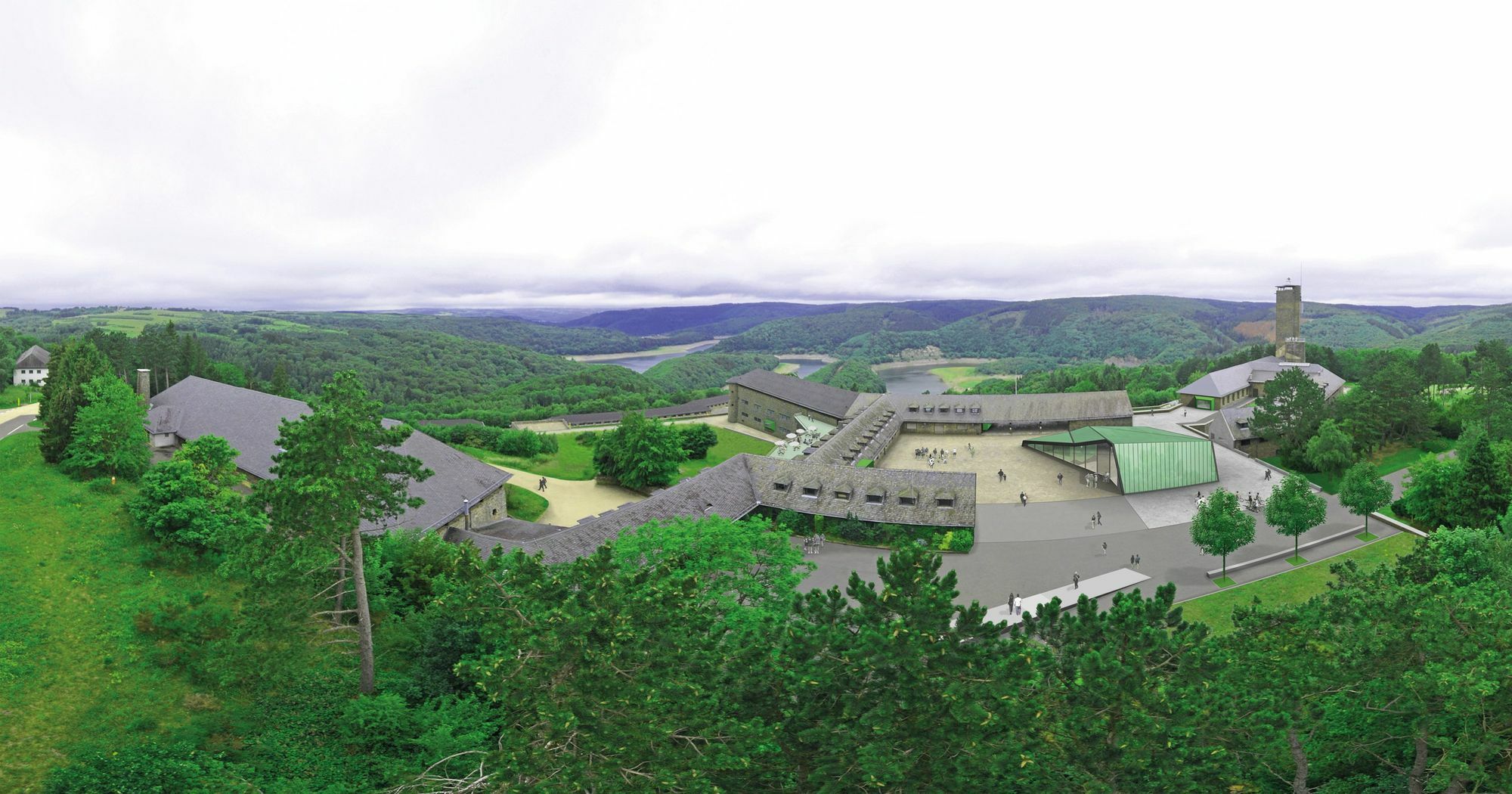 Mit einem hohen Kostenaufwand und langer Bauzeit wurde dann der historische Zentralbau der 100 Hektar großen Anlage Vogelsang zu einem 12.500 Quadratmeter umfassenden Besucher- und Ausstellungszentrum gemacht, in das jährlich nach den Prognosen der Planer 300.000 Besucher strömen sollen. Herzstücke des Projekts sind neben dem Besucherzentrum zwei Ausstellungen, die einen zeitgerechten, barrierefreien und viersprachigen Zugang zu den beiden zentralen Themen des Standorts ermöglichen sollen.