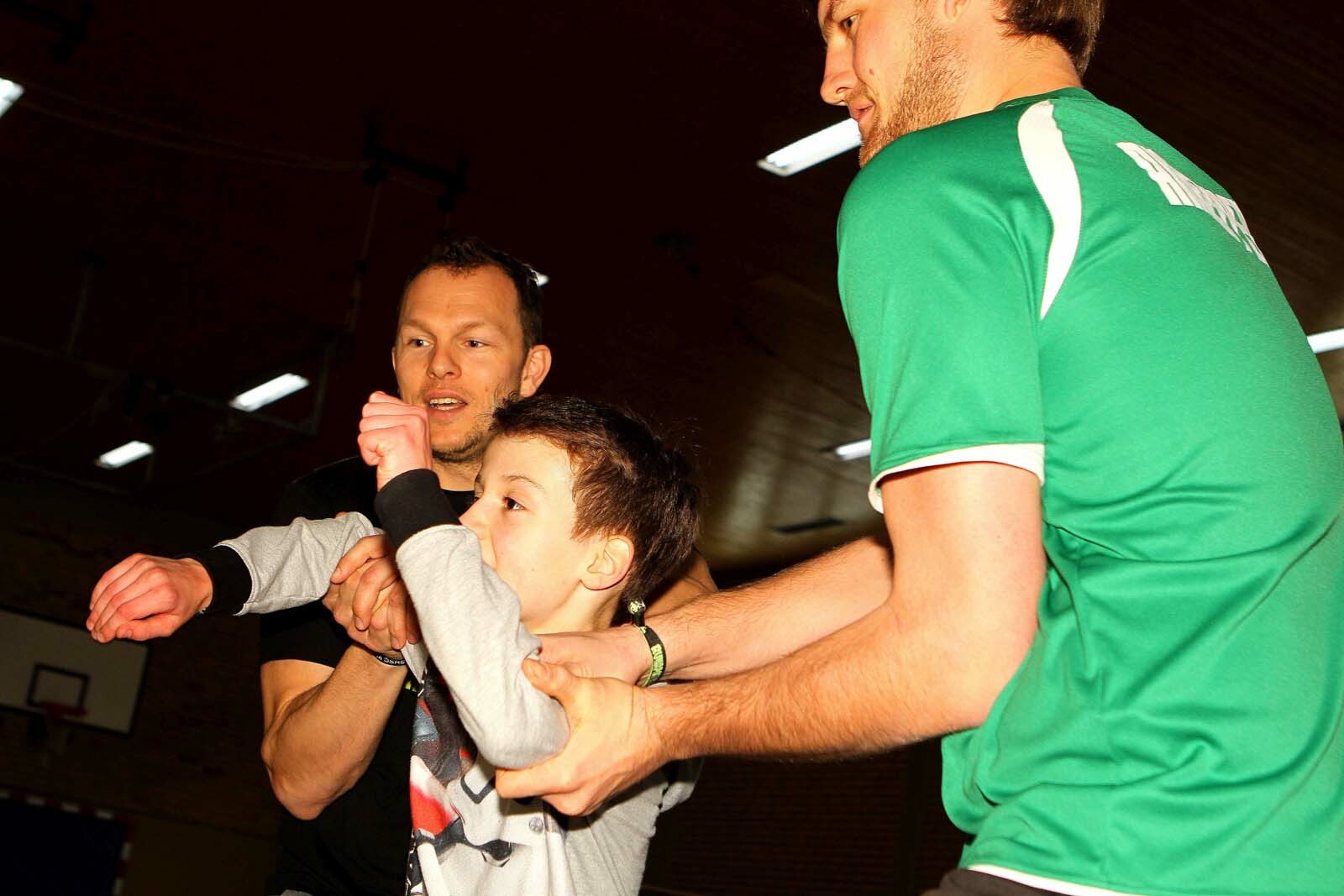 Sieben Jungs im Alter zwischen 11 und 15 Jahren der Förderschule im Hermann-Josef-Haus in Urft konnten sich wieder einmal auf einen außergewöhnlichen Unterrichtstag in der Turnhalle freuen. Der Weltmeister von 2007 im »Parcouring« oder auch »Parkour« genannten Sportart, Matthias Esser, war der Einladung von Sportlehrer Michael Giefer gefolgt und bot den Kids einen Workshop. »Wall Flip«, »Cat Balance«, »Tic-Tac”, »Reverse Underbar” oder »Cat Leap” - um nur einige Übungen beim Namen zu nennen - zeigte Matthias Esser, Dozent der Deutschen Sporthochschule Köln, den Jungen des Hermann-Josef-Hauses in seinem Workshops. Viel Spaß Die Kids waren mit großem Engagement dabei. »Die Gruppe ist mit sehr großem Eifer dabei und es macht richtig Spaß mit ihr zu trainieren«, freute sich Matthias Esser über die gute Beteiligung der jungen Sportler. Sportlehrer Michael Giefer ergänzte: »Ich finde es toll, das sich Matthias immer wieder neue Übungen einfallen lässt und es dadurch nie langweilig wird.« »Pacouring« oder »Parkour« ist eine Sportart, die von David Belle entwickelt wurde. Dabei muss der Läufer eine Strecke von »A« nach »B« und die darin eingebauten Hindernisse überwinden und dabei den effizientesten und kürzesten Weg zurücklegen. Die Sportart kann grundsätzlich überall durchgeführt werden - in der Stadt, im Wald oder, wie in der Förderschule in Urft, auf einem künstlich angelegten Weg in der Turnhalle. In städtischer Umgebung werden Bänke, Mülltonnen, Garagen bis hin zu Häusern und auch Hochhausschluchten übersprungen und überklettert, wobei die Hindernisse nicht verändert werden dürfen. Es geht darum, mit dem vorhandenen Umfeld zurecht zu kommen. Unterricht Dabei werden viele Sachen geschult. Neben Schnelligkeit, Kraft und Ausdauer fließen auch Geschicklichkeit, Koordination und Motorik in diese Sportart ein, sodass der ganze Körper angesprochen wird. Matthias Esser besucht die Schule in Urft bereits zum dritten Mal und ist den Schülern kein Unbekannter mehr. Gemeinsam mit Referendar Sebastian Diekmann und Sportlehrer Michael Giefer, die bei den Übungen Hilfestellungen leisteten, gingen die Schüler mit großem Engagement ans Werk. »Wir bauen einige Sachen auch in der normalen Sportunterricht mit ein, damit die Übungen perfektioniert werden«, erklärt Giefer. Paul Düster Informationen über Matthias Esser findet man auch im @ Internet www.matthias-esser.de
