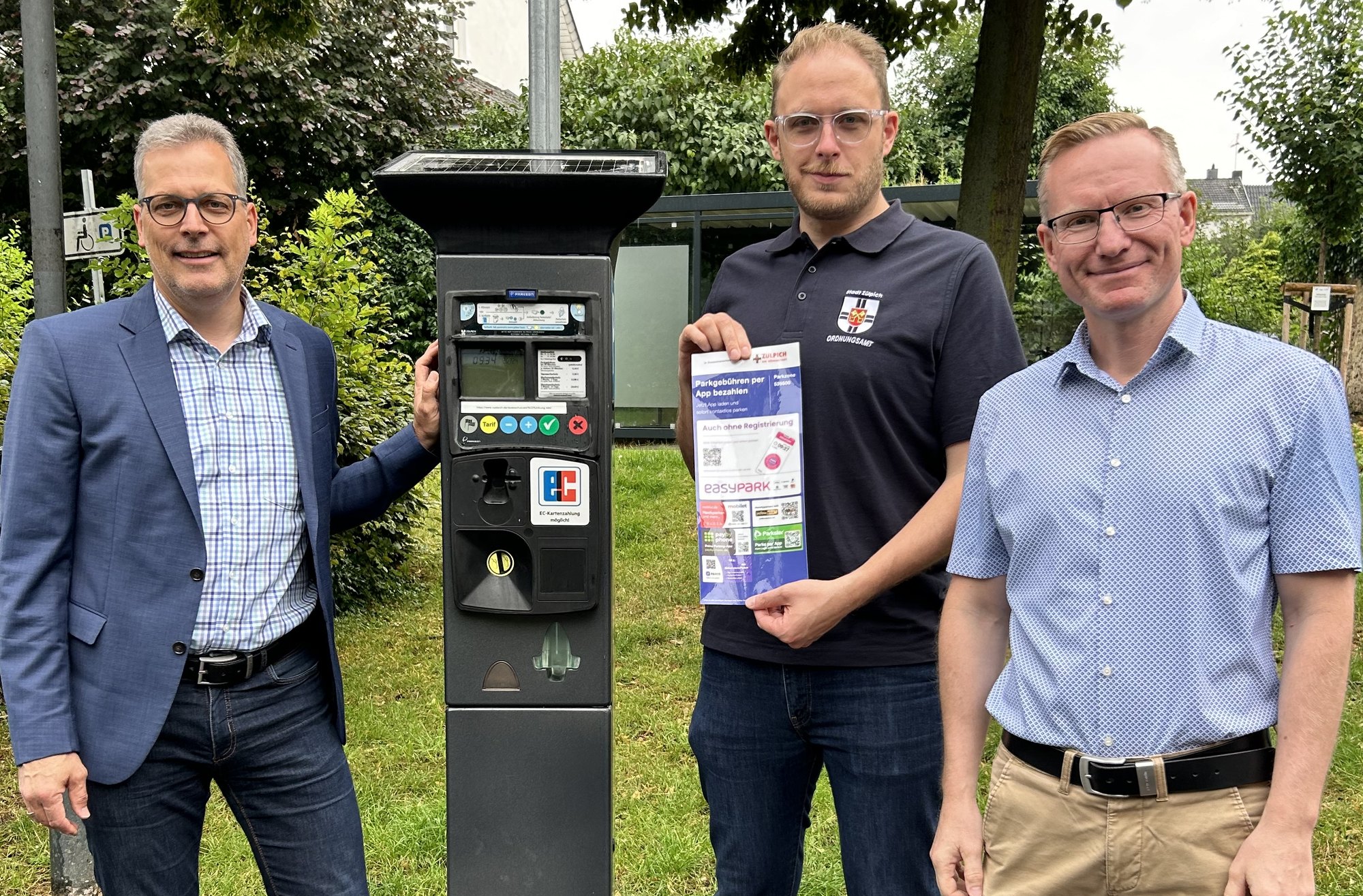 Bürgermeister Ulf Hürtgen begrüßt die Möglichkeit des »digitalen Parkens« in Zülpich: »Damit können wir nun eine komfortable und kontaktlose Alternative zum Bezahlen mit Münzen am Automaten bereitstellen. Der neue Service bietet außerdem mehr Flexibilität, weil man die Parkzeit auch von unterwegs aus stets im Blick behält und steuern kann.« In Zülpich wird der neue Service auf allen kostenpflichtigen Parkplätzen angeboten: im Rathausinnenhof, auf dem Parkplatz Martinstraße (altes Kino), auf der Weierstraße sowie auf den Parkplätzen Bonner Straße/Frankengraben, Von-Lutzenberger-Straße und Nideggener Straße (alte Videothek). Ob für ein Fahrzeug ein digitales Parkticket vorhanden ist, erkennen die Mitarbeiter des Ordnungsamtes am Kennzeichen, das sie mit einem zentralen Online-System abgleichen können.