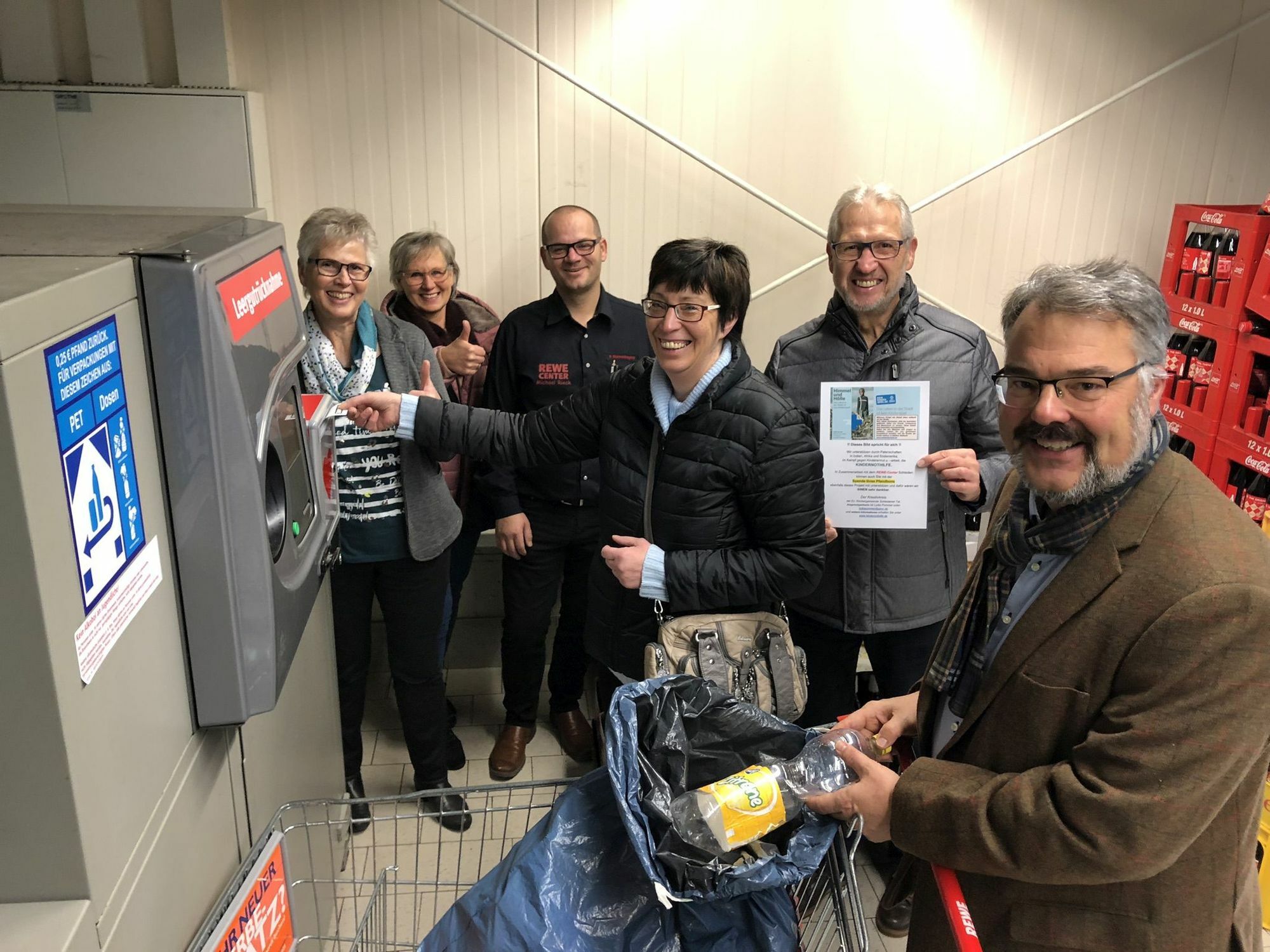 Sie warf den Pfandbon, den sie gerade am Leergutautomaten erhalten hatte, kurzerhand in eine Spendenbox, die sich gleich neben dem Ausgabeschacht befindet. Bei den Mitgliedern des Kreativkreises der Evangelischen Trinitatis-Kirchengemeinde Schleidener Tal kam Freude auf. Denn man hofft, mit dieser Spendenbox aus einer finanzielle Zwickmühle zu kommen. »Es fällt immer schwerer, den Betrag von rund 1400 Euro für die drei Patenschaftsprojekte aufzubringen, welche die Kirchengemeinde seit vielen Jahren bei der Kindernothilfe unterhält«, so Pfarrer Erik Schumacher.
