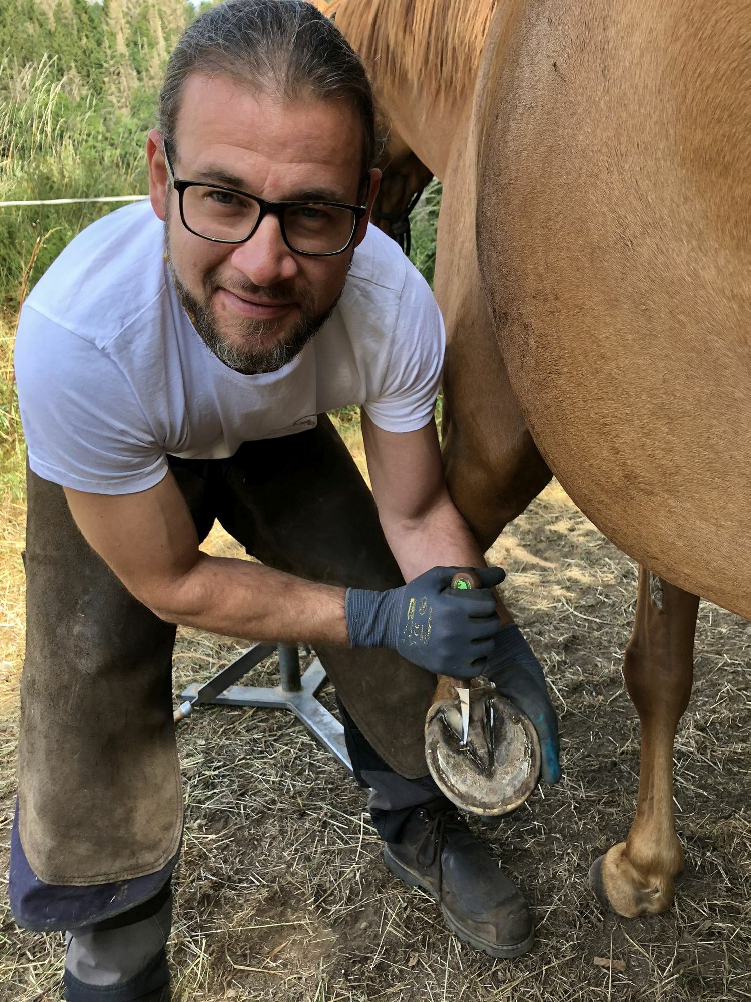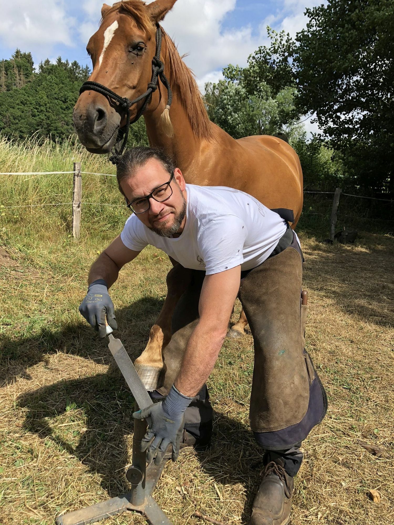 Seine Ausbildung hat er im April 2017 mit der Prüfung beim staatlich anerkannten Institut »Gesellschaft Deutsche Huf- und Klauenpflege (GDHK)« beendet und ist seitdem »glücklicher Hufpfleger«.