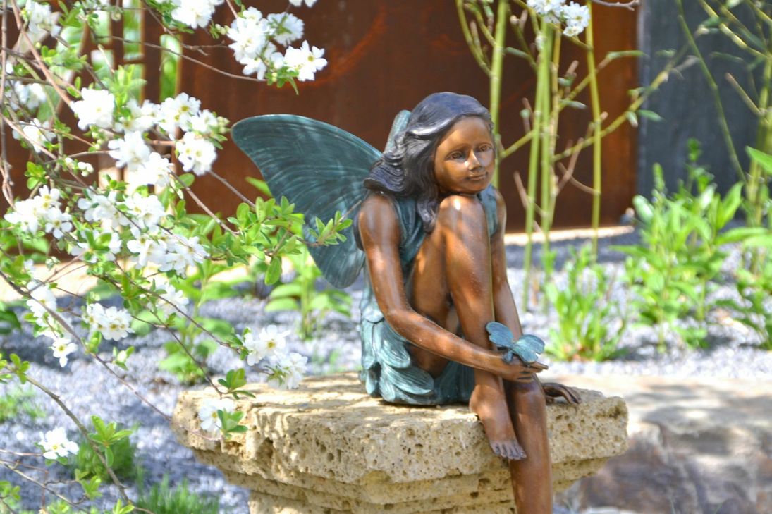 Die wunderschöne Bronzeelfe ist im Sommer 2015 von Unbekannten aus dem „Garten für Augen und Seele“ der überregionalen Mustergartenausstellung des Gartenschauparks Zülpich entwendet worden. Jetzt überbrachte die Firma Schmitz aus Reifferscheid, die den Garten gestaltet hat und weiterhin pflegt, die erfreuliche Nachricht, dass die Polizei die Elfe sicherstellen konnte.