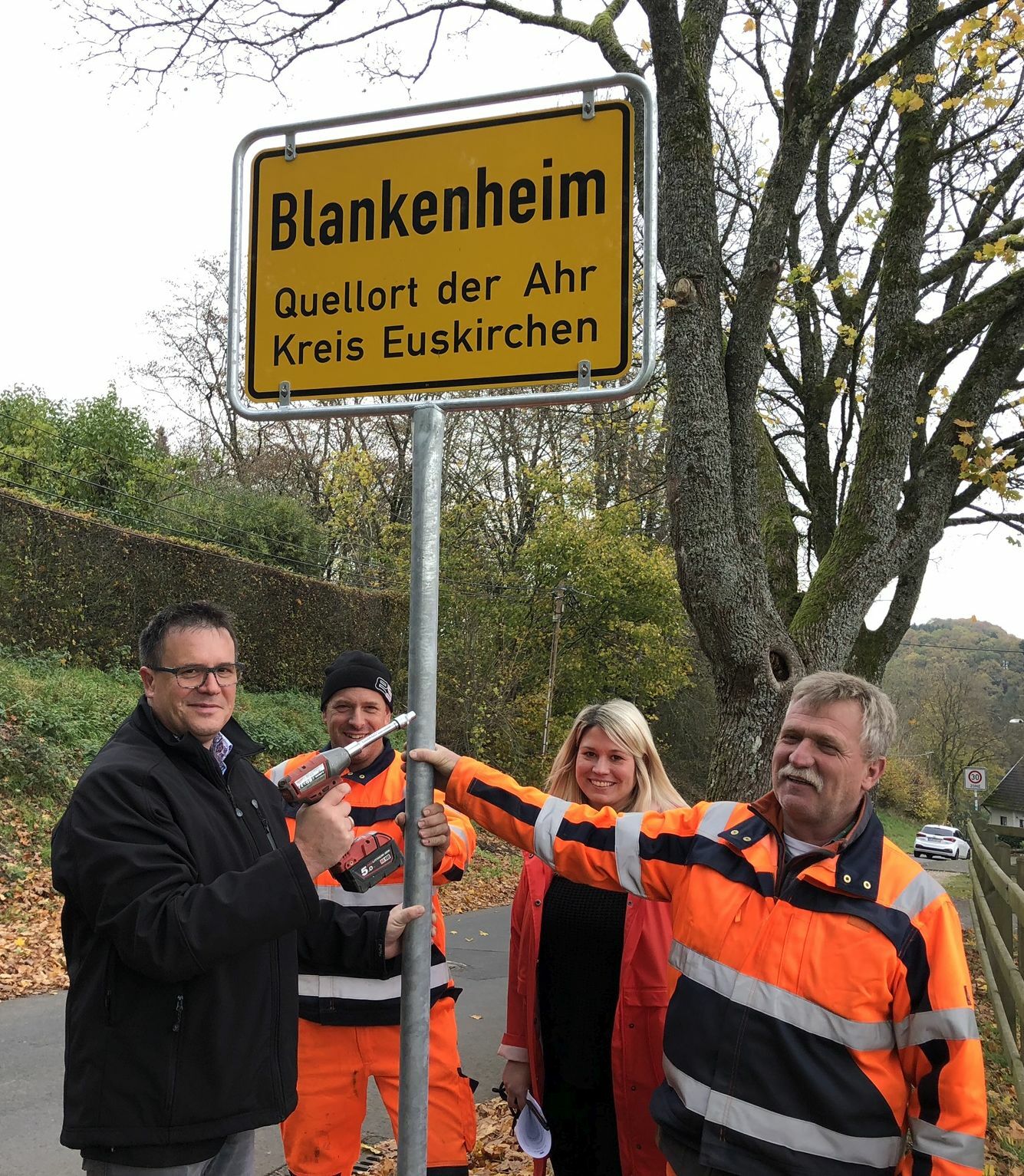 Sie entspringt dort als kleiner Bach im Keller eines Hauses. »Diese Quelle«, weiß Jennifer Meuren von der Blankenheimer Gemeindeverwaltung, »ist bereits in sehr alten Karten und Urkunden vermerkt und erwähnt.« Im weiteren Verlauf wird die Ahr weltweit bekannt - zumindest bei den Weinkennern. »So bekannt die Ahr ist, so wenig weiß man außerhalb unserer Region, wo sie entspringt«, so Rolf Hartmann, Bürgermeister der Gemeinde Blankenheim. Das soll sich jedoch ändern. Im Rahmen eines Corporate Design-Prozesses will man das Alleinstellungsmerkmal der »Quelle der Ahr« zum werbewirksamen Markenzeichen machen. Eine Maßnahme von vielen auf dem Weg dorthin war der Beschluss des Rates, auf den Ortsschildern des Kernortes Blankenheim die Bezeichnung »Quellort der Ahr« zu führen. Dieser Beschluss, von dem insgesamt 12 Schilder betroffen waren, ist mittlerweile umgesetzt.