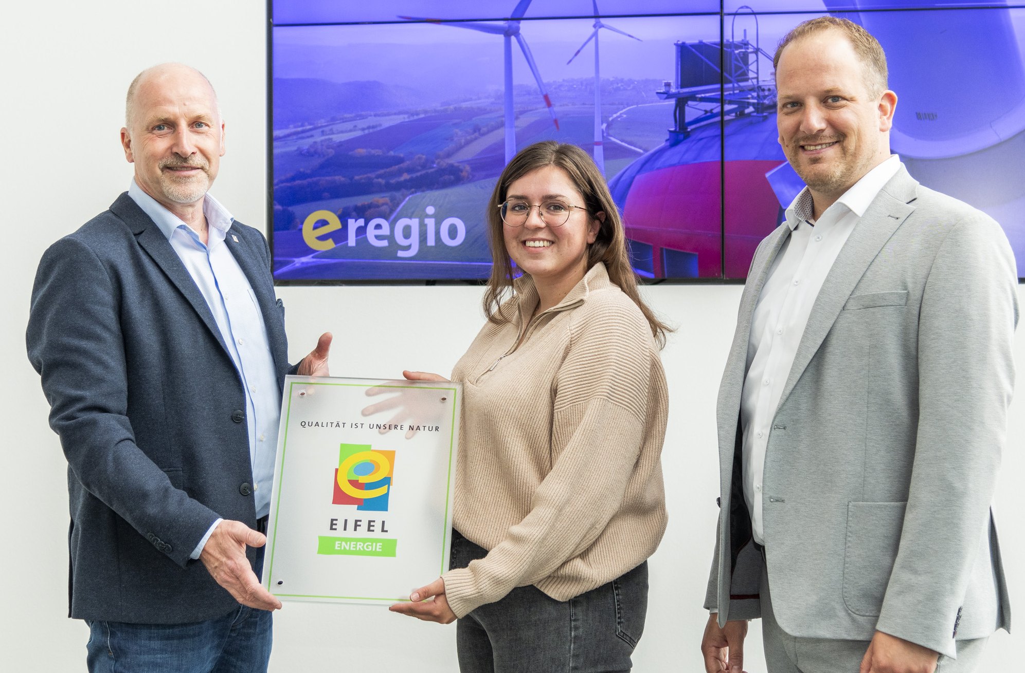 Mit dem imageträchtigen Regionalmarke-Eifel-Logo für den Regionalstrom unterstreicht e-regio nun noch stärker Nähe und Transparenz. Seiner Kundschaft gegenüber zeigt e-regio damit die Verwurzelung in der Eifelregion und unterstützt gleichzeitig eine für die Eifel aufgebaute und wirksame Marke für Nachhaltigkeit.