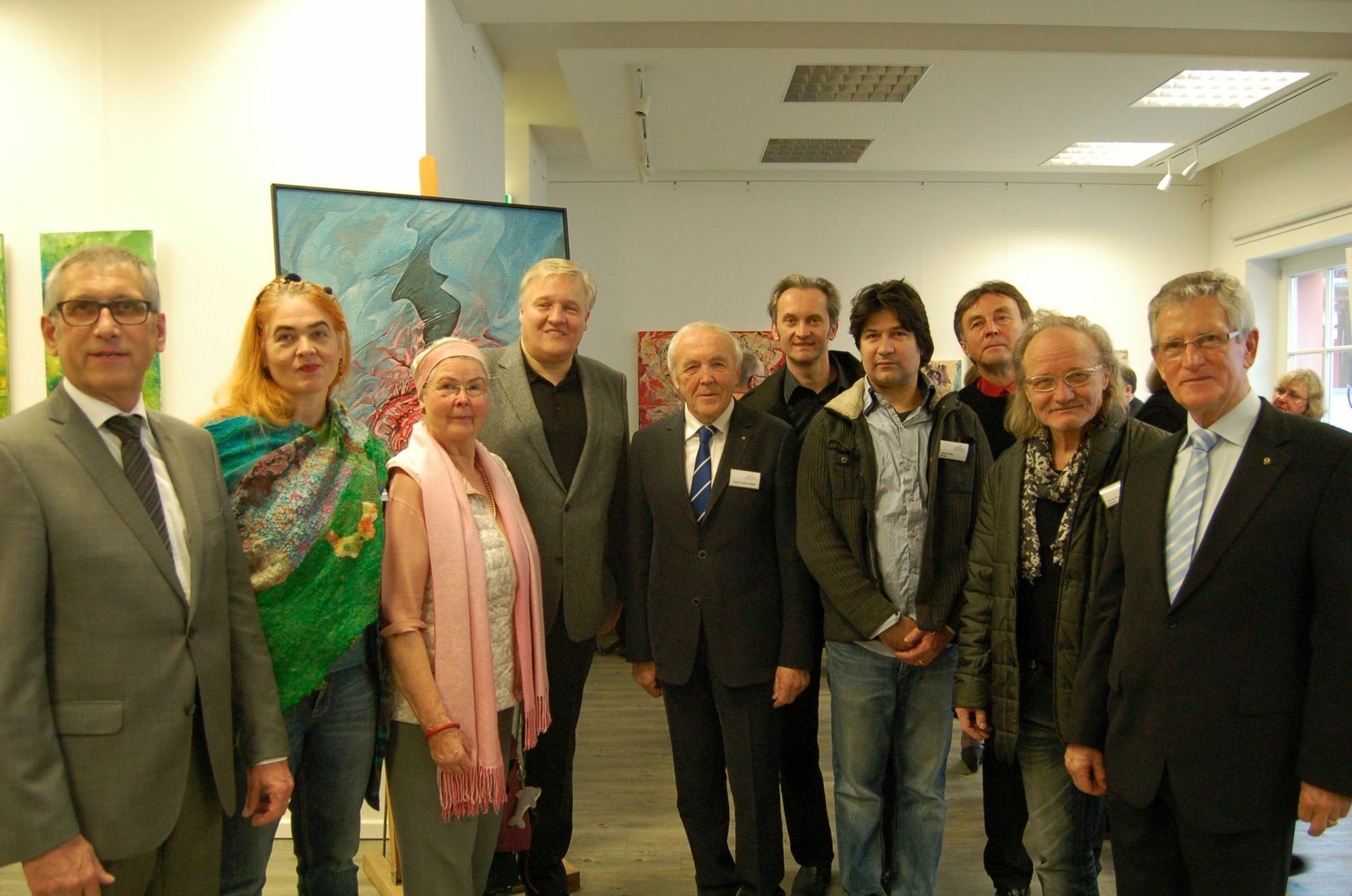 Sie hoffen, dass 2016 ein ebenso erfolgreiches Jahr für die Kunstakademie wird wie 2015: Landrat Wolfgang Spelthahn und Akademiedirektor Prof. Dr. Frank Günter Zehn-der (4.u.5.v.l.), Fördervereinsvorsitzender Fred Kessel (r.), Heimbachs Bürgermeister Peter Cremer (l.) und einige der Dozenten.