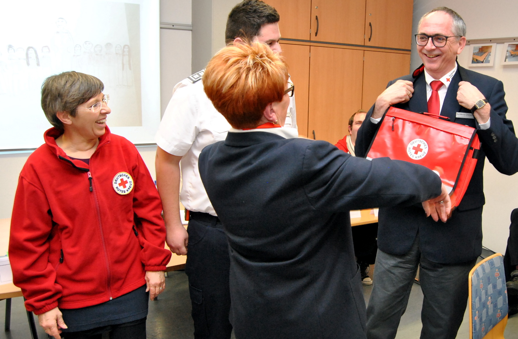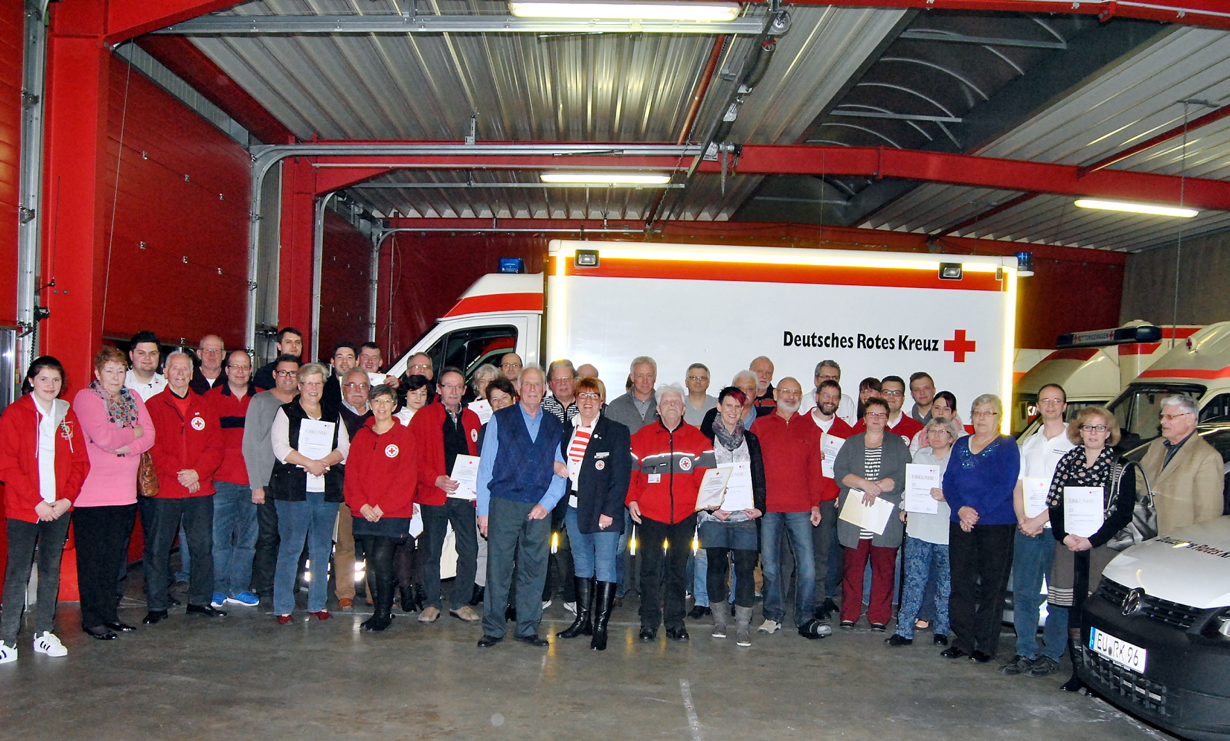 654 Flüchtlinge betreute der DRK-Kreisverband Euskirchen, seit am 16. September die ersten Zufluchtssuchenden im ehemaligen DHL-Verwaltungsgebäude in Euskirchen aufgenommen wurden. „Es wird auch 2016 nicht ruhiger“, kündigte Kreisvorsitzender Karl-Werner Zimmermann in der Jahreshauptversammlung des DRK-Ortsvereins Euskirchen an. Sorgen bereite ihm das indes nicht. „Wir können auch Flüchtlinge“, habe das Rote Kreuz in den vergangenen Monaten eindrucksvoll bewiesen. Zimmermann: „Ich weiß, dass auch weiterhin jeder sein Bestes geben wird.“ In wenigen Wochen, so informierte Thomas Moll, der stellvertretende Leiter der Unterkunft, sei das Gebäude so hergerichtet, dass dort Platz für 500 Menschen vorhanden sei. Über die Flüchtlingsarbeit habe man viele Helfer gewinnen können, die zuvor nichts mit dem DRK zu tun gehabt hätten, konstatierte Moll. Die neuen Herausforderungen und unbekannten Situationen hätten die „DRK-Familie“ nur noch näher zusammenrücken lassen. „Schier unerschöpflich“, so Thomas Moll, sei die Bereitschaft zum Engagement, obwohl die Doppelbelastung durch Beruf und Ehrenamt für viele mit erheblichem Verzicht verbunden sei. Dass es neben der Betreuung der Flüchtlinge auch noch den „ganz normalen DRK-Alltag“ zu bewältigen gab, stellte der Euskirchener Gemeinschaftsleiter Daniel Pöthmann in seinem Jahresrückblick heraus. Allein zirka 40 der 148 geplanten Einsätze im Jahr 2015 hatten mit Karneval zu tun, hinzu kamen für die 89 im Einsatzdienst tätigen Helfer 19 ungeplante Aktionen wie etwa die Bombenfunde in Köln. Rund 45 Helfer kümmerten sich bei insgesamt 18 großen und kleinen Blutspendeterminen in Euskirchen, Stotzheim, Kuchenheim und Kirchheim um Verpflegung, Auf- und Abbau und die Organisation. Außerdem transportierte das DRK in 348 Fällen Menschen ins Krankenhaus. Auf drei Jugendgruppen verteilen sich die insgesamt 40 Kinder und Jugendlichen im Euskirchener Jugendrotkreuz. Unter anderem halfen sie den erwachsenen Rotkreuzlern, den Martinszug zu betreuen. „Zukünftig soll die Zusammenarbeit von JRK und DRK gestärkt werden“, kündigte Pöthmann an. Insgesamt kann der Ortsverein Euskirchen auf 285 aktive Helfer in den Bereichen Jugend- und Seniorenarbeit, Einsatzdienst, Vorstand, ärztlicher Fahrdienst und Blutspende bauen. Zu den Zielen in diesem Jahr zählt unter anderem eine Intensivierung der Zusammenarbeit mit der Freiwilligen Feuerwehr und dem Technischen Hilfswerk. Personell gab es zwei Veränderungen. Dagmar Harder, die langjährige Ortsvereins-Vorsitzende, trat ausgesundheitlichen Gründen zurück. Ihre Nachfolgerin wurde die ehemalige Bereitschaftsführerin Angelika Gräber-Stupp. Aus beruflichen Gründen gab Sebastian Drexler, der zum Leitungsteam der Euskirchener Rotkreuz-Gemeinschaft gehörte, seinen Rücktritt bekannt. Keine Rotkreuz-Versammlung ohne Ehrungen: Auch in diesem Jahr nahm die Auszeichnung verdienter Mitglieder und treuer Blutspender einen breiten Raum ein. „Blutspender sind Lebensretter“, stellte die Euskirchener Blutspendebeauftragte Edeltraud Engelen ganz klar heraus. Auch Kreisvorsitzender Karl Werner Zimmermann lobte die Bereitschaft zur Blutspende, obwohl derjenige, der spende, ja nicht einmal wisse, wem er damit helfe. „Diese Bereitschaft ist beachtlich und nicht selbstverständlich“, so Zimmermann. Geehrt wurden: Fünfjährige Mitgliedschaft: Joachim Mentzel, Sandra Cisielski, Hildegard Speer, Anne Bergheim, Marco Kraemer, Angelika Voigt, Johann Schatzkens, Jana Lintermann und Anneliese Beisert. Zehn Jahre: Dieter Pape, Anika Schmitz, Johannes Schneider, Carl Emil Wittgen, Mariano Romero. 15 Jahre: Thomas Zimmermann, Nina Voigt, Frank Solottke. 20 Jahre: Thomas Marzi. 30 Jahre: Hans Günther Waldenburg. 45 Jahre: Herbert Schmitz. 25 Blutspenden: Wolfgang Fröhlich, Margarethe Gilsdorf, Heinz Günther, Markus Heidel, Karl Heinz Hoffmeister, Lothar Holz, Elisabeth Jacobs, Dr. Gabriele Keus, Gudrun Klonisch, Uwe Möller, Petra Neuburg, Uwe Neumann, Hans Helmut Peiter, Virginia Pereira, Robert Pfeifer, Ingrid Poth, Oksana Reiter, Hermann-Josef Ruland, Winfried Steiniger, Uwe Vaas, Saskia van der Weerd-Trimborn, Siegfried Weißer, Gerhild Wiluda, Florian Witt. 50 Blutspenden: Michael Beek, Hans Walter Braun, Heinz Gräf, Martin Nieder, Ernst Piel, Wilma Schlösser, Bruno Theis, Hans Alex Többens, Richard van Bonn. 75 Blutspenden: Klaus Heinrich, Ursula Hilberath, Bruno Krings, Andreas Lanzrath, Harald Lingscheid, Jörg Reichstein. 100 Blutspenden: Arno Annen, Claus Werner Fleischhauer, Robert Kaulen, Adalbert Kirfel, Josef Linden, Monika Schmaul. 125 Blutspenden: Rolf Pascher. 150 Blutspenden: Josef Schmitz. Text: ProfiPress