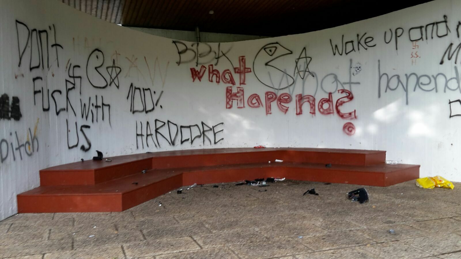Dort, wo an schönen Sommersonntagen die Gäste bei den Kurkonzerten unterhalten werden, verunzieren nun hässliche Schmierereien die komplette Wand des Musikpavillons. Und auch im direkt angrenzenden Kurpark wüteten unbekannte Personen und beschmierten die Bruchsteinwände beim Springbrunnen. Bürgermeister Udo Meister weist nochmals darauf hin, dass mit allen juristischen Mitteln versucht wird, der Täter habhaft zu werden und diese zur Verantwortung zu ziehen. Es sei nicht hinzunehmen, dass immer wieder öffentliche Einrichtungen, aber auch Privateigentum offenbar von einigen wenigen sinnlos beschädigt und zerstört werden. Hinweise zu den Tätern werden an die Stadt Schleiden -Ordnungsamt- oder die Polizeidienststelle erbeten. Sophia Eckerle von der Stabsstelle Tourismus- & Kulturförderung schätzt den neuerlichen Schaden auf rund 1.000 Euro. Die Mitarbeiter des städtischen Bauhofs werden kurzfristig wieder erhebliche Mehrarbeit leisten müssen, um die vorsätzlich angerichteten Schäden zu beheben, damit das nächste Kurkonzert am kommenden Sonntag die Gäste erfreuen kann.