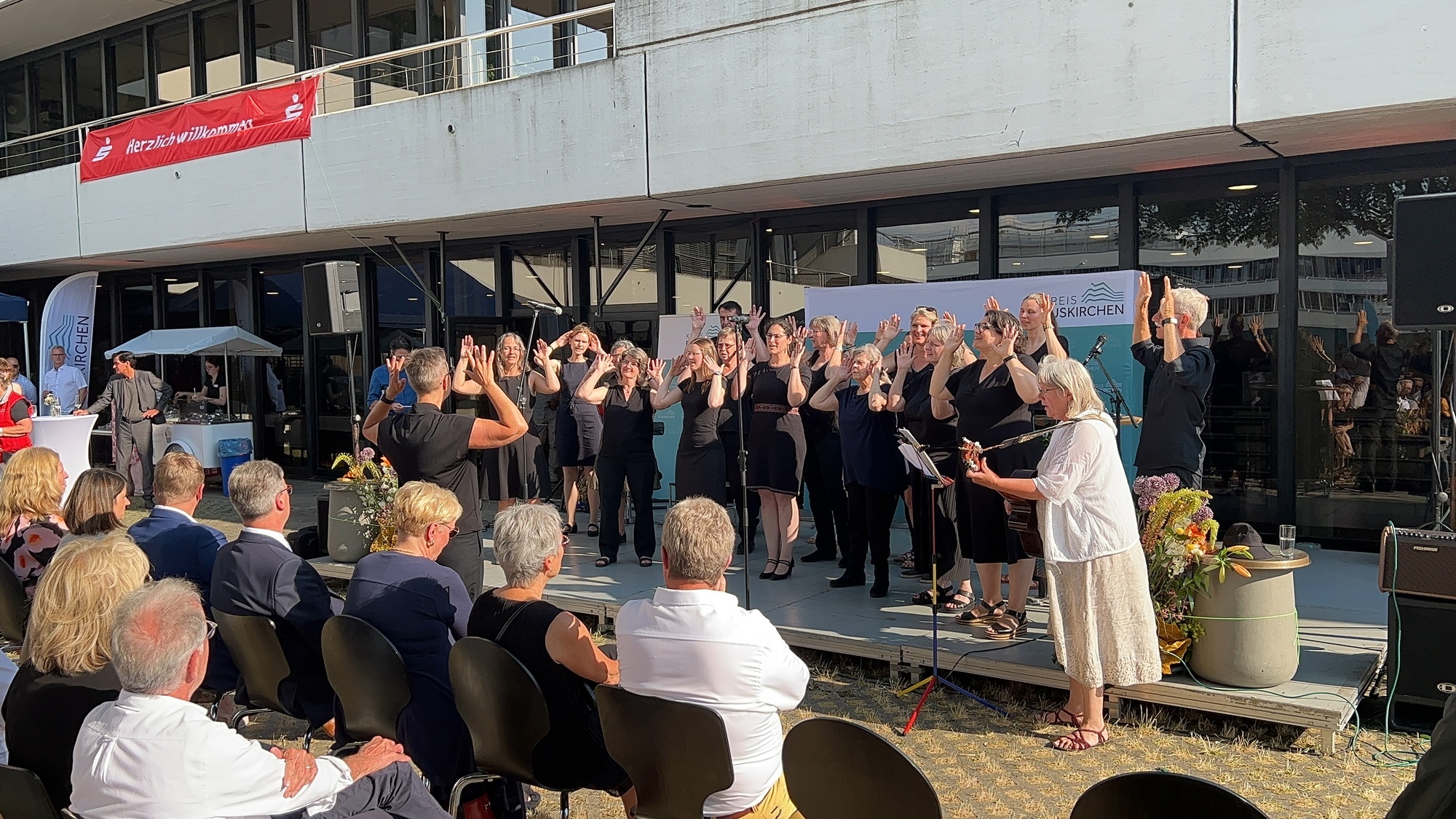 Erstmals wurden die Redebeiträge auf dem Sommerempfang auch durch Gebärdendolmetscherin Claudia Dubbelfeld, die gleichzeitig auch den Chor dirigierte, übersetzt.