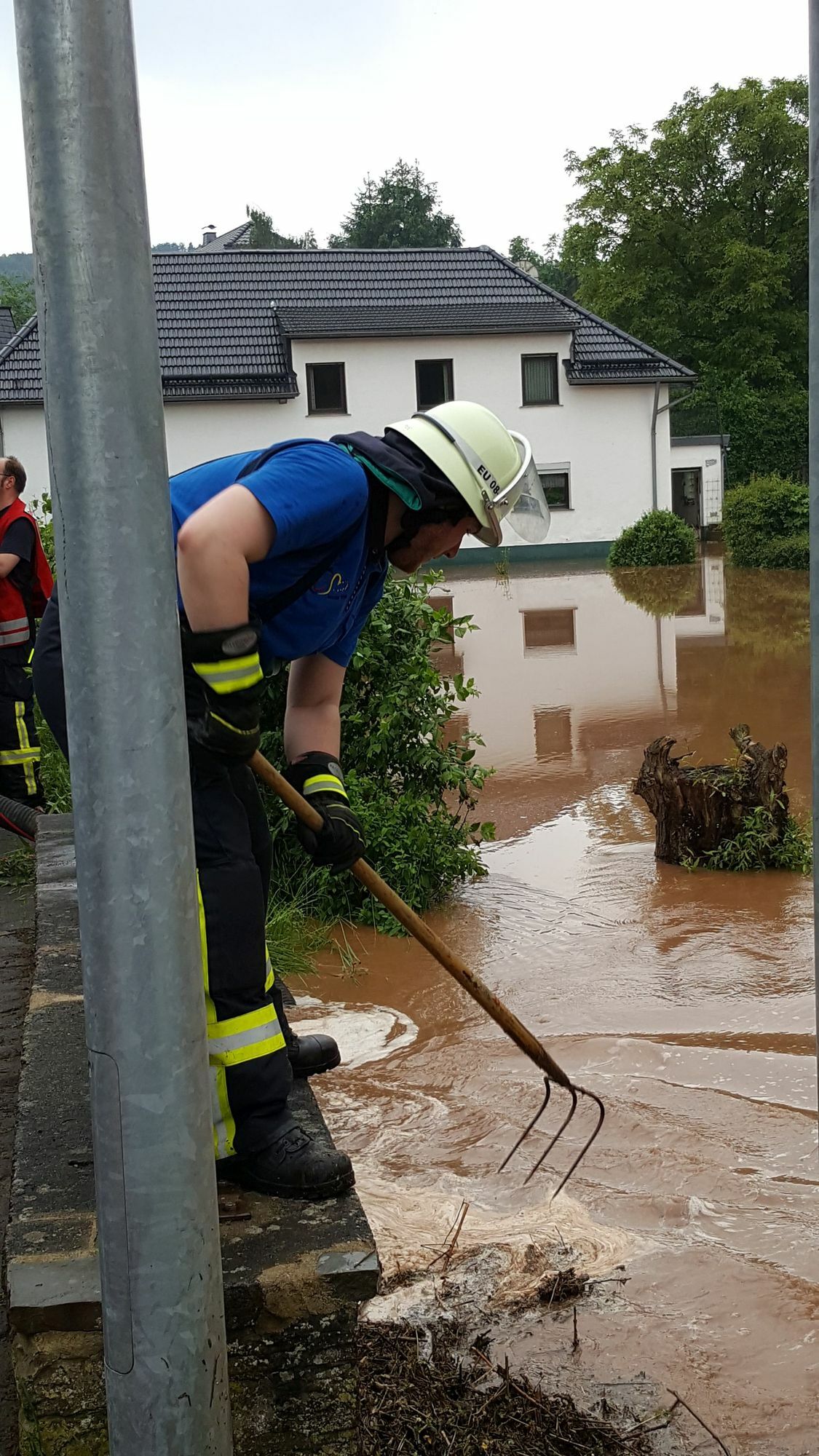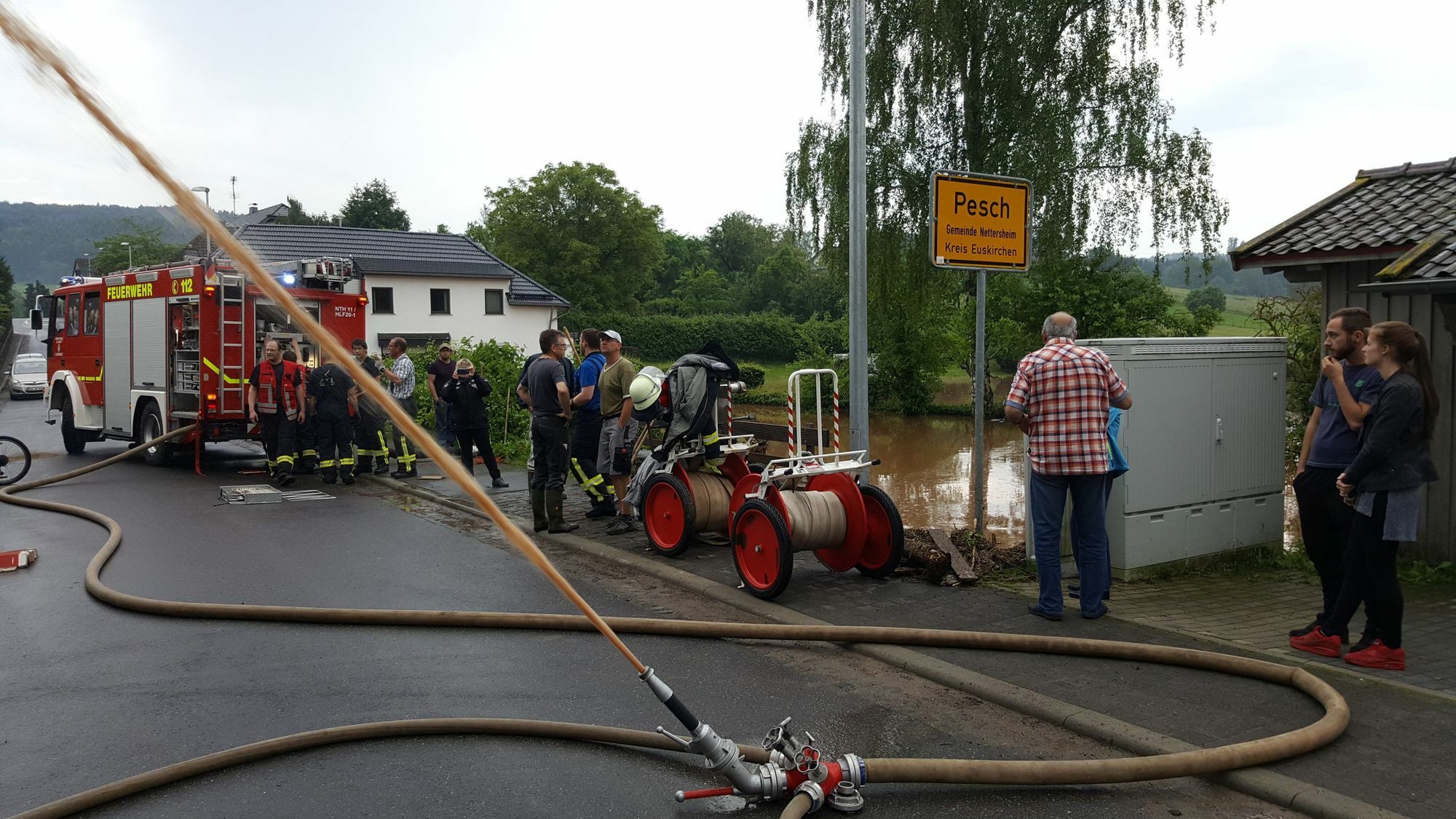 Dort hatte nach Auskunft des Kreispressesprechers Wolfgang Andres das heftige Gewitter sein Zentrum. Zwischen Nettersheim und Mechernich fielen innerhalb kürzester Zeit 80 Liter Regen auf den Quadratmeter. Glücklicherweise waren keine Personenschäden zu beklagen. Dafür liefen aber zahlreiche Keller voll, viele Straßen wurden überflutet. Auf der Autobahn A1 stand das Wasser im Bereich Nettersheim zeitweise bis zu 30 Zentimeter hoch. Der Kreisverkehr auf der Landstraße 115 bei Zingsheim glich einer Seenlandschaft und musste vorübergehend gesperrt werden. Laut Andres waren rund 300 Feuerwehrkräfte im Einsatz, dazu kam Unterstützung durch das THW.In Nettersheim und Mechernich waren alle Feuerwehrkräfte ausgerückt, in Mechernich wurden sie durch einen Löschzug aus Zülpich und aus Gemünd unterstützt. 54 Einsätze waren im Raum Mechernich, 23 Einsätze im Raum Nettersheim erforderlich. Besonders hart getroffen wurde Eiserfey, wo die Rettungskräfte anfangs »Land unter« melden. Auch Vussem, Breitenbenden, Weyer und Vollem wurden geflutet. Über Zingsheim und Engelgau gingen ebenfalls massive Regenmengen runter.