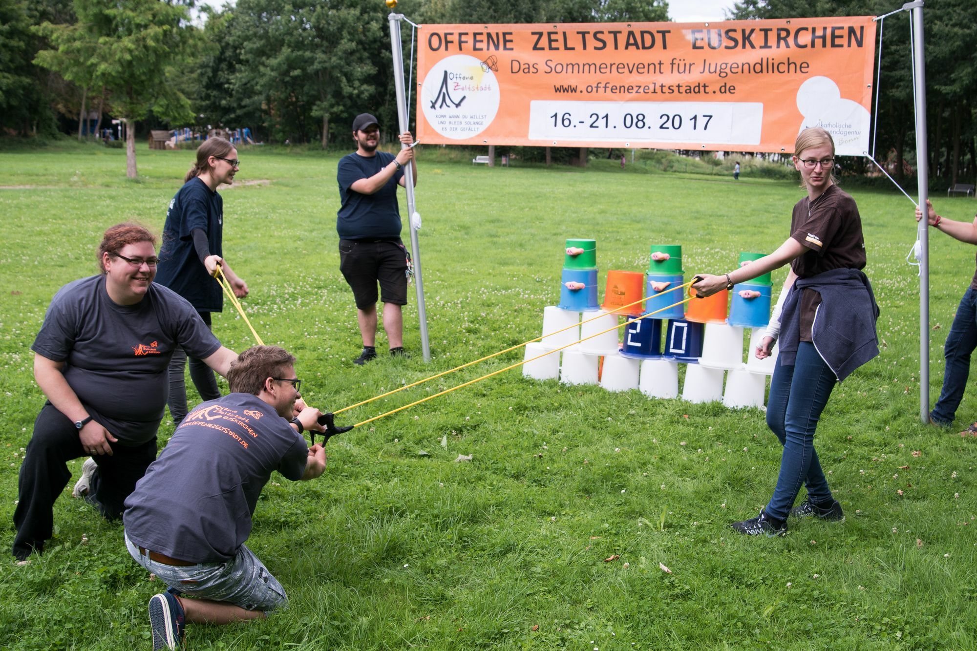 Für jede/n ist etwas dabei, könnte das Motto der diesjährigen Zeltstadt aber auch lauten, wenn man sich das umfangreiche Programm der sechstägigen Freizeitmaßnahme ansieht. Mit einem Team von 20 ehrenamtlichen Mitarbeitern/innen werden aktuelle Trends, wie der Bau von Fidget-Spinnern, Siebdruck, Graffiti, Angry Birds Superschleuder, Workshops, Sportangebote, Lagerfeuerkonzert, Rudelsingen und vieles mehr angeboten. Dazu sind die Jugendlichen zum Besuch und zum Verweilen in der Zeltstadt eingeladen. Damit die Besucher nicht auf ihren üblichen Komfort verzichten müssen, bietet die Offene Zeltstadt (OZ) in Zusammenarbeit mit Freifunk Euskirchen wieder ein kostenloses WLAN an.