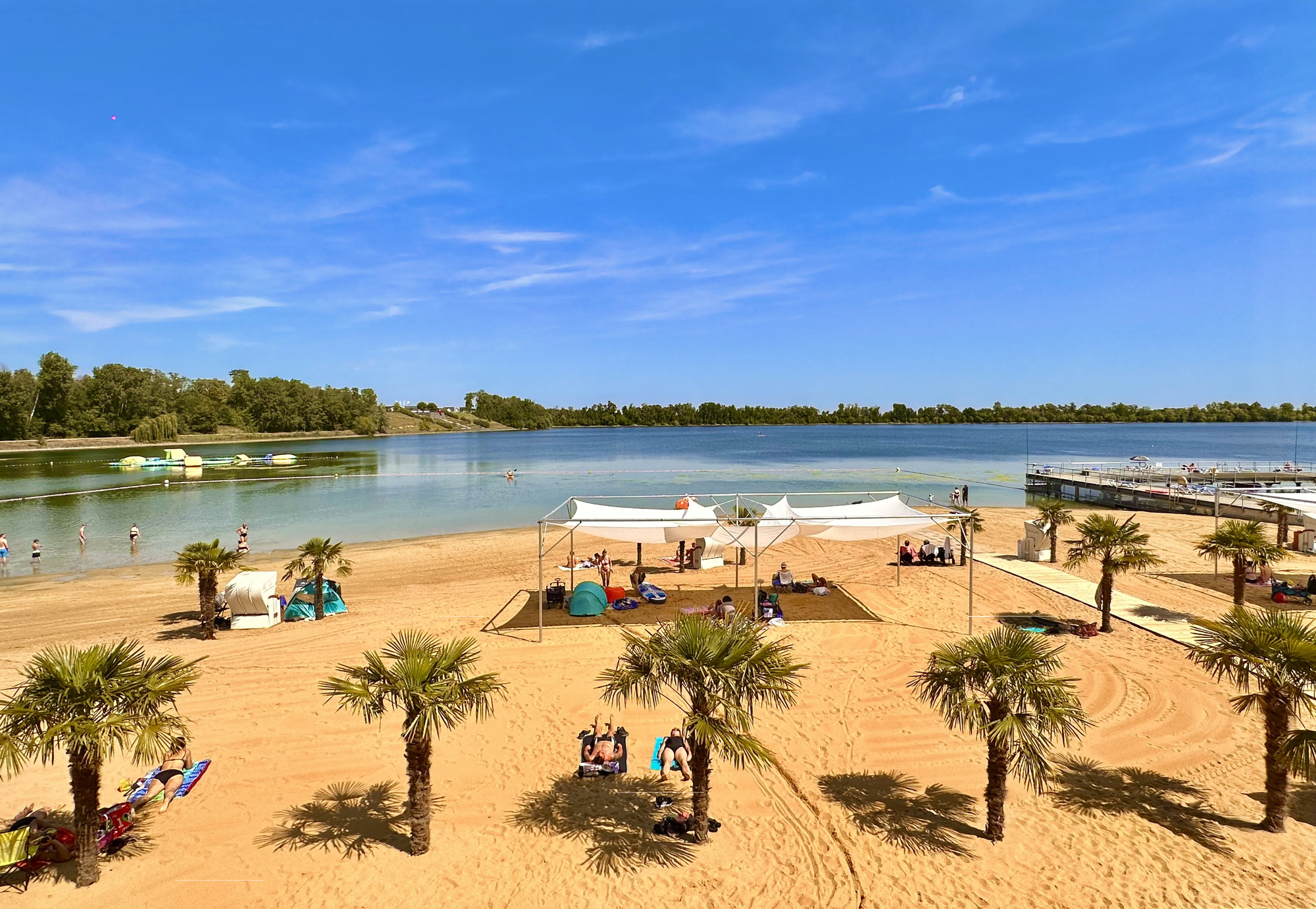 Die beliebte Badestelle am Zülpicher Wassersportsee bietet auf über 4.000 Quadratmetern einen feinen Sandstrand mit Palmen, der zum Sonnenbad und Schwimmen einlädt. Besonders in den Sommermonaten sorgen unter anderem ein Piraten-Kletterschiff, Aquapark, Riesen-Hüpfkissen, Wasserspielplatz und der Kletterberg für Spaß.