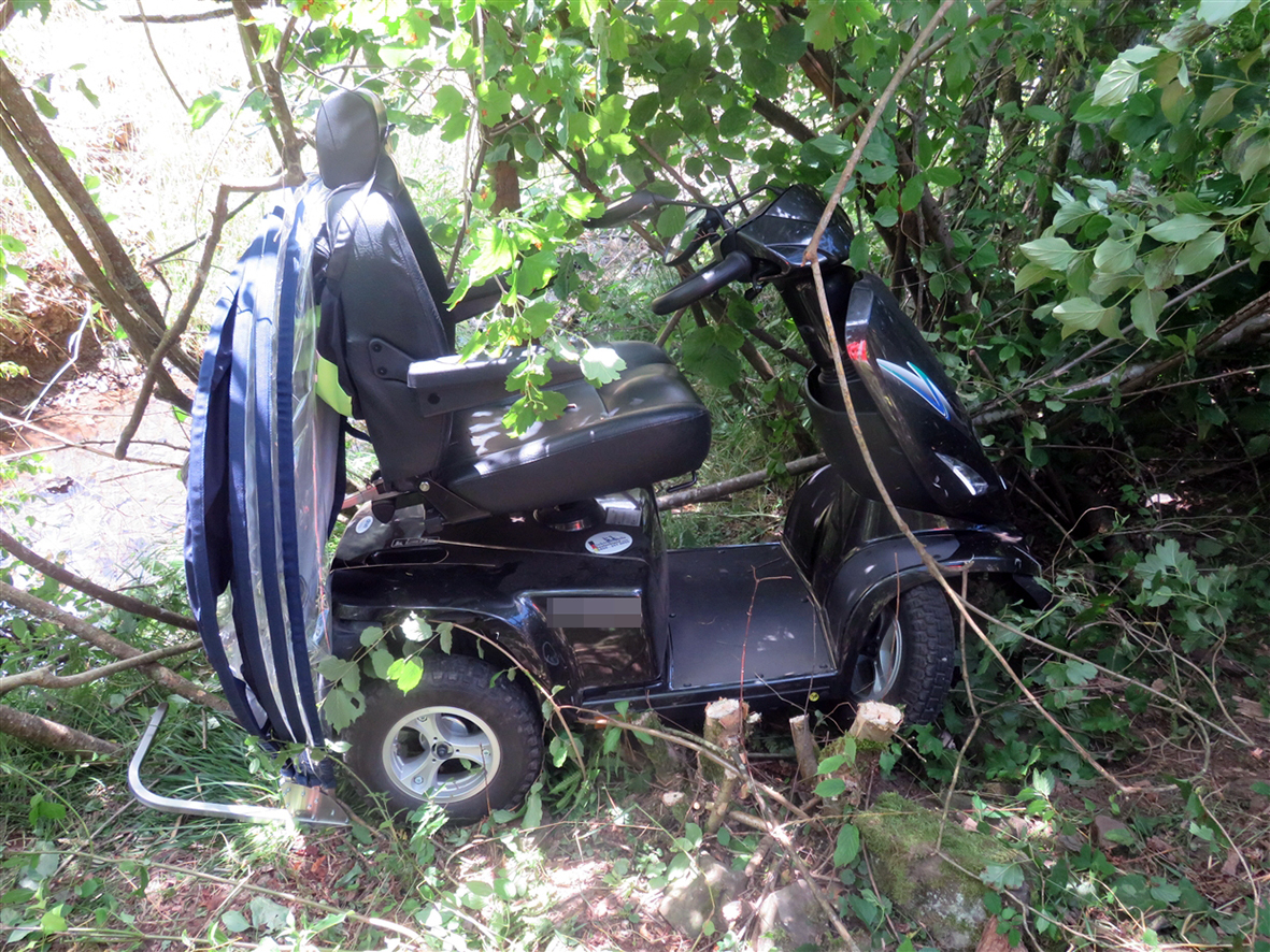 Ein 88-Jähriger aus dem Bad Münstereifeler Höhengebiet befuhr am Montag,, 10. Juli, 13.29 Uhr, mit seinem Krankenfahrstuhl (motorisierter Rollstuhl) an der Landstraße 165 einem Radweg in Richtung Schuld. Plötzlich habe es laut Fahrer einen Schlag gegeben und das Fahrzeug habe sich nicht mehr steuern lassen. Der Senior kam nach rechts von der Fahrbahn ab und fuhr die Böschung hinunter. Dort kam er zum Stillstand. Unter seinem Krankenfahrstuhl eingeklemmt war er nicht in der Lage, sich eigenständig zu befreien.