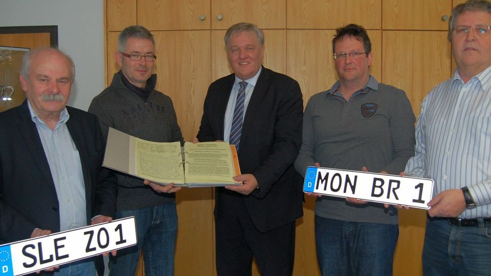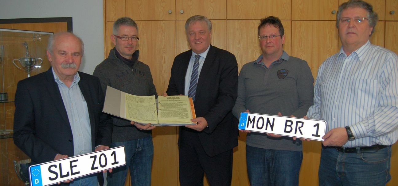 Neben dem altbekannten DN und dem JÜL (Altkreis Jülich) sind für alle Bewohner des Dürener Kreisgebietes nun auch MON (Altkreis Monschau) und SLE (Altkreis Schleiden) im Angebot. Für den Zugriff auf MON und SLE hatte sich eine Initiative aus der Eifel stark gemacht. Die Initiatoren Berthold Rüttgers aus Vossenack, Bernd Gottschalk aus Raffelsbrand, Günter Virnich aus Schmidt und Hubertus Zander aus Heimbach waren denn auch die ersten, die die frohe Kunde von Landrat Wolfgang Spelthahn erhielten. »Wer seine Heimatverbundenheit auf diese Weise zeigen möchte, kann das gerne tun«, sagte er. »Der Ansturm auf die JÜL-Kennzeichen hat gezeigt, dass die alten Ortskürzel vielen Kraftfahrern am Herzen liegen.« Seit November 2012 wurde es 15.873 Mal zugeteilt. Neugliederung Im Zuge der kommunalen Neugliederung waren JÜL, MON und SLE Anfang 1972 abgeschafft worden und dann mit den alten Fahrzeugen nach und nach aus dem Straßenbild verschwunden. Das Bundesministerium für Verkehr und digitale Infrastruktur hatte die Vergabe dieser Kennzeichen durch eine Änderung seiner Rechtsauffassung schließlich wieder möglich gemacht. Mit dem Altkennzeichen bekommen gerade die Bewohner aus dem Heimbacher Stadtgebiet wieder ein Stück Heimatgefühl zurück. Durch die kommunale Neugliederung waren Heimbach, Hasenfeld, Hausen, Blens, Hergarten, Vlatten und Düttling dem Kreis Düren zugeordnet worden. SLE-Kennzeichen - so bekommt man es Das SLE-Kennzeichen wird ab dem 15. Juli vom Straßenverkehrsamt des Kreises Düren ausgegeben. Wegen der Kooperation der Zulassungsbehörden können Kraftfahrer aus dem Kreis Düren das MON- und SLE-Kennzeichen auch im Straßenverkehrsamt der Städteregion in Würselen bekommen. Alle Informationen zur Reservierung eines MON- oder SLE-Wunschkennzeichens hat der Kreis Düren auf der Seite seiner Zulassungsstelle unter @ Internet www.kreis-dueren.de/ zulassung zusammengestellt. Bei der Online-Reservierung von MON- oder SLE-Kennzeichen wird eine Reservierungsnummer generiert, die für die erfolgreiche Zulassung zwingend erforderlich ist. Beim Umzug in einen anderen Zulassungsbezirk kann das Kennzeichen beibehalten werden.
