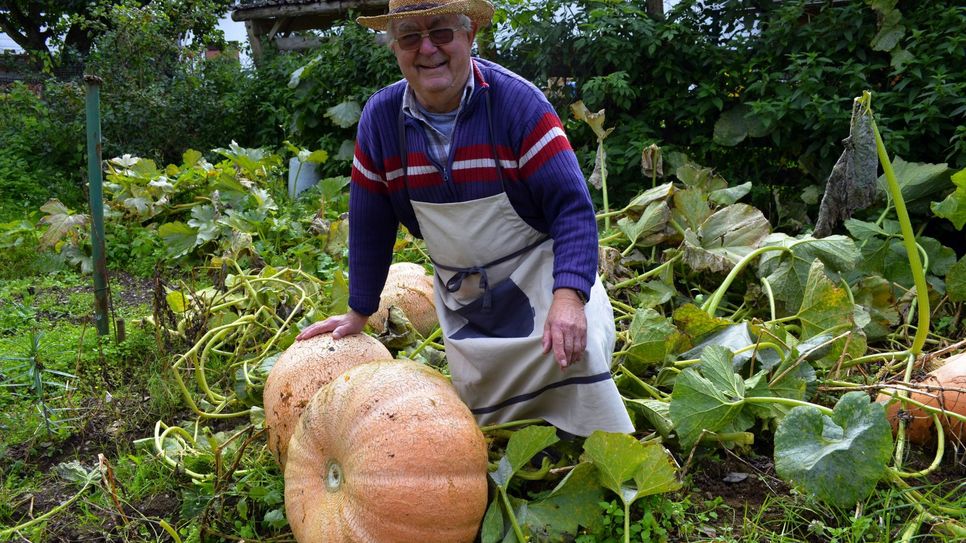 »Ich habe seit 50 Jahren ein ganz großes Hobby, meinen Garten«, erzählt der rüstige Rentner, dessen Wiege in Oberschlesien nahe der Stadt Breslau stand. Mit seinen Eltern kam er 1950 in die Eifel und wurde schließlich in Hellenthal sesshaft. Dort hegt und pflegt Alfred Gerstenkorn auf einer Fläche von rund 1600 Quadratmetern seinen Garten. Und er kann in diesem Jahr auf einige Exemplare blicken, von denen er selbst sagt: »So dicke Kürbisse hatte ich eigentlich noch nie.«