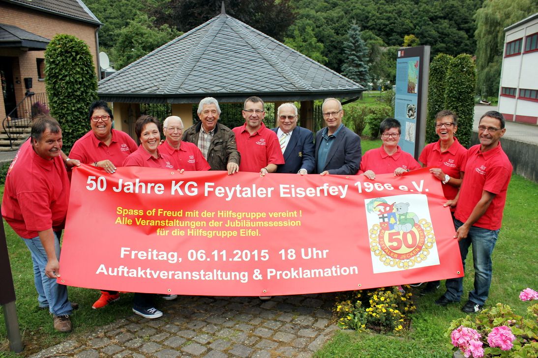 Die „Feytaler Jecken“ aus Eiserfey feiern in der kommenden Session 2015/16 ihr 50-jähriges Bestehen. „Wir hatten in den vergangenen Jahren sehr viel Spaß“, sagt der Vereinsvorsitzende Heinz Heimersheim. Mit Blick auf das Jubiläum sei dann der Wunsch entstanden, etwas davon zurückzugeben. Schnell war man sich in der KG einig: „In der Jubiläumssession werden alle Überschüsse gespendet, und zwar an die Hilfsgruppe Eifel.“