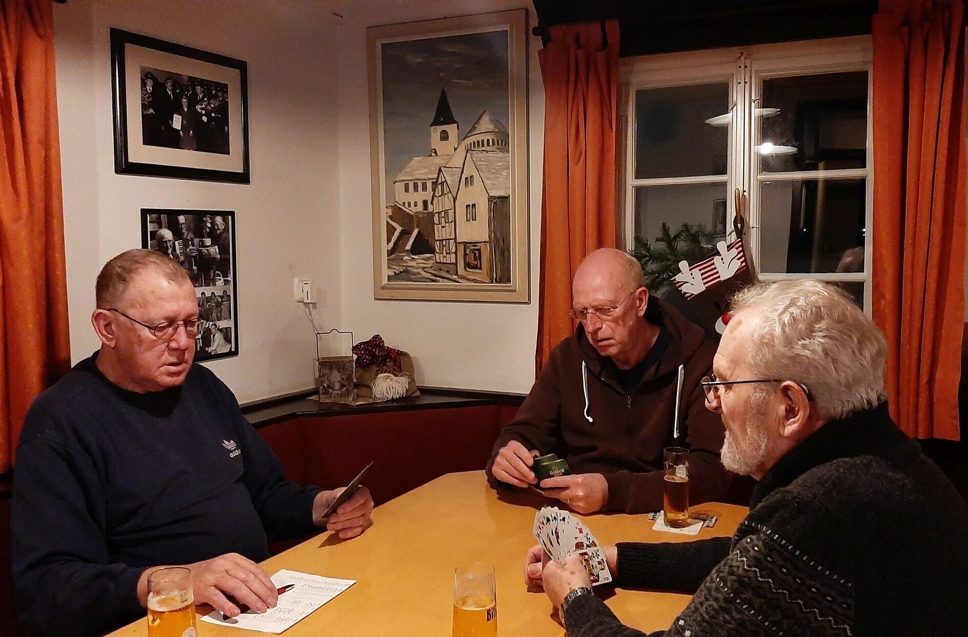 Nur durch einen Zufall kam der Verein zur Erhaltung der Gaststätte Gier in den Besitz dieses vom Künstler signierten Gemäldes, das auf einem Speicher in Enzen aufgefunden wurde. Der Kartenvorverkauf für das Weihnachts-Special der »Eifelgäng« in der Gaststätte Gier war der Auslöser. Beim Schriftführer des Kneipenvereins, Reiner Züll, hatte Anna Heilmann aus Enzen Karten geordert und bei der Gelegenheit nachgefragt, ob Interesse an einem alten Bild der Kaller Pfarrkirche bestünde. Sie würde dem Verein das Bild schenken.