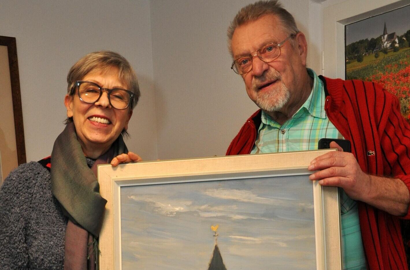 Anne Heilmann ist zweite Vorsitzende des Heimatvereines in Enzen und berichtete, dass dort in einem kleinen Museum alte Exponate aus dem Dorf ausgestellt werden. Zu diesem Zweck wurde für eine Ausstellung über die dörfliche Schulentwicklung nach geeigneten Exponaten auf dem Speicher Ausschau gehalten. Bei dieser Aktion kam dann das Bild der Kaller Pfarrkirche ans Licht. Da auf dem Gemälde kein Hinweis auf den Standort der Kirche zu finden war, habe sie nachgeforscht, wo das Gotteshaus stehen könnte und stieß schließlich auf Kall.