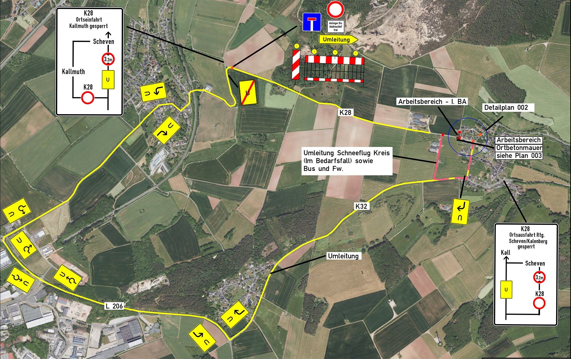 Wegen der Sperrung wird eine weiträumige Umleitung über Dottel, Kall und Scheven ausgeschildert. »Für den Schulbus, die Feuerwehr sowie für den Rettungs- und Räumdienst haben wir im Vorfeld der Sperrung bereits einen Wirtschaftsweg als Umfahrung ertüchtigt«, erklärt Andreas König. Er weist darauf hin, dass dieser Weg wirklich nur von diesem Nutzerkreis befahren werden darf, um Begegnungsverkehre auf dem engen Weg zu vermeiden.