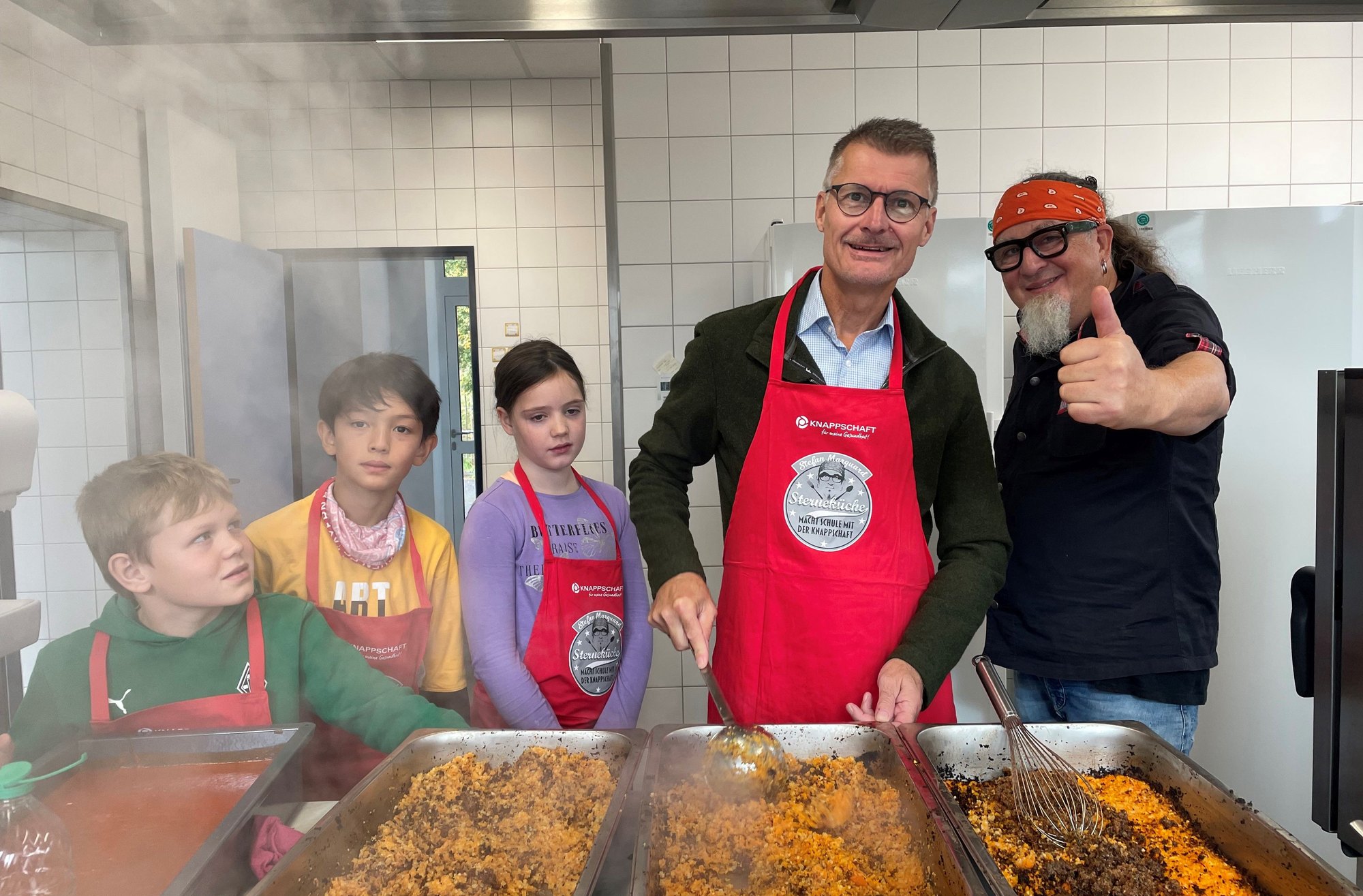 Bettina am Orde, Geschäftsführerin der KNAPPSCHAFT, betont: „Schulen haben ein großes Potenzial, ein gesellschaftlicher Ort für Veränderung zu sein. Durch eine gesunde und nachhaltig ausgerichtete Schulverpflegung wird die Gesundheit von Kindern und Jugendlichen gestärkt. Mit Stefan Marquard und unserem Projekt ‚Sterneküche macht Schule’ bieten wir engagierten Schulen und Kitas ein praktikables und nachhaltiges Konzept zur Verbesserung ihres Verpflegungsangebotes direkt vor Ort.“