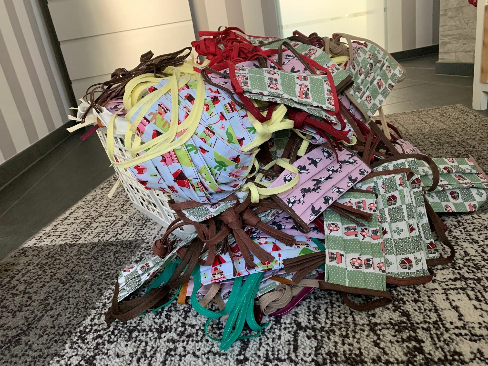 »Wir haben«, so Andreas Mertens, Vorsitzender der KG, »aus gegebenen Covid 19-Anlass eine Vereinsaktion gestartet und unsere Pappnase gegen die Nähmaschine getauscht.« Will heißen: 26 fleißige Näherinnen und Näher haben insgesamt über 700 Stoffmasken genäht und dabei 35 Meter Baumwollstoff und 1200 Meter Schrägband verarbeitet.