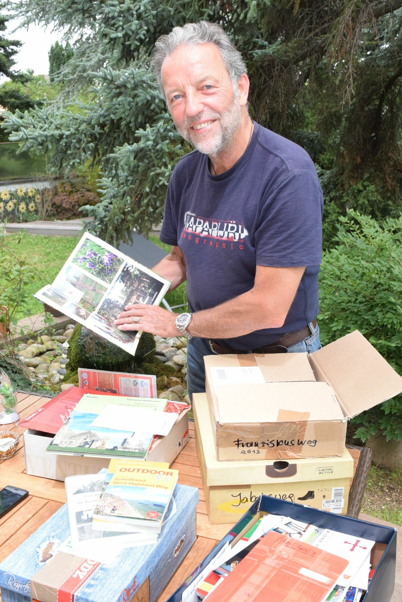 Zur Vorbereitung auf den 800 Kilometer langen Jakobsweg über die Pyrenäen bis nach Santiago de Compostela in Spanien ist er jeden Abend mit 10 Kilogramm Gepäck auf dem Rücken über Feldwege gelaufen. »Mittlerweile weiß ich, ist das zu viel Gepäck. Weder ein Messer noch eine Taschenlampe habe ich auf meinen Reisen bisher benötigt«, erzählt er. Worauf es ankomme sei vernünftiges Schuhwerk, gute Socken und Regenbekleidung.