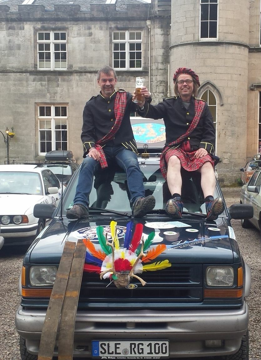 »Es hat«, lacht Gregor Scheld, »jeden Tag geregnet, aber auch die Sonne hat sich blicken lassen.« Ede Hanf hat der schnelle Wechsel in der Vegetation fasziniert: »Eben noch befand sich mit Palmen am Meer und wenige Höhenmeter weiter präsentierte sich die karge Landschaft der schottischen Highlands.« Beeindruckt zeigten sich beide auch von der Freundlichkeit und Offenheit der Schotten. Im Supermarkt sei man gleich bei der Wahl des richtigen Whiskeys beraten worden... Vom Veranstalter der Charity-Rallye wurden die Teilnehmer erst beim Start mit einem Roadbook ausgestattet, das fortan als Wegweiser dienen sollte, aber auch die ein oder andere Aufgabe an die Teilnehmer stellte. So erheischte beispielsweise das Team Sleyda Sonderpunkte, weil man den Ford Explorer schick zurecht gemacht hatte (Foto oben). Oder man musste nach schottischer Manier Baumstämme über einen Parcour wuchten. »Vor allen Dingen aber«, schwärmten Scheld und Hanf, »sind wir in Ecken und Landschaft gekommen, die wir so nie zu Gesicht bekommen hätten.« Denn vorbereitet wird eine solche Rallye rund drei Jahre lang. Und für beide steht fest: Der Ford Explorer bleibt dem Team erhalten. Er soll im kommenden Jahr wieder zum Einsatz kommen. Bei welcher Rally dies sein wird, steht noch nicht fest.