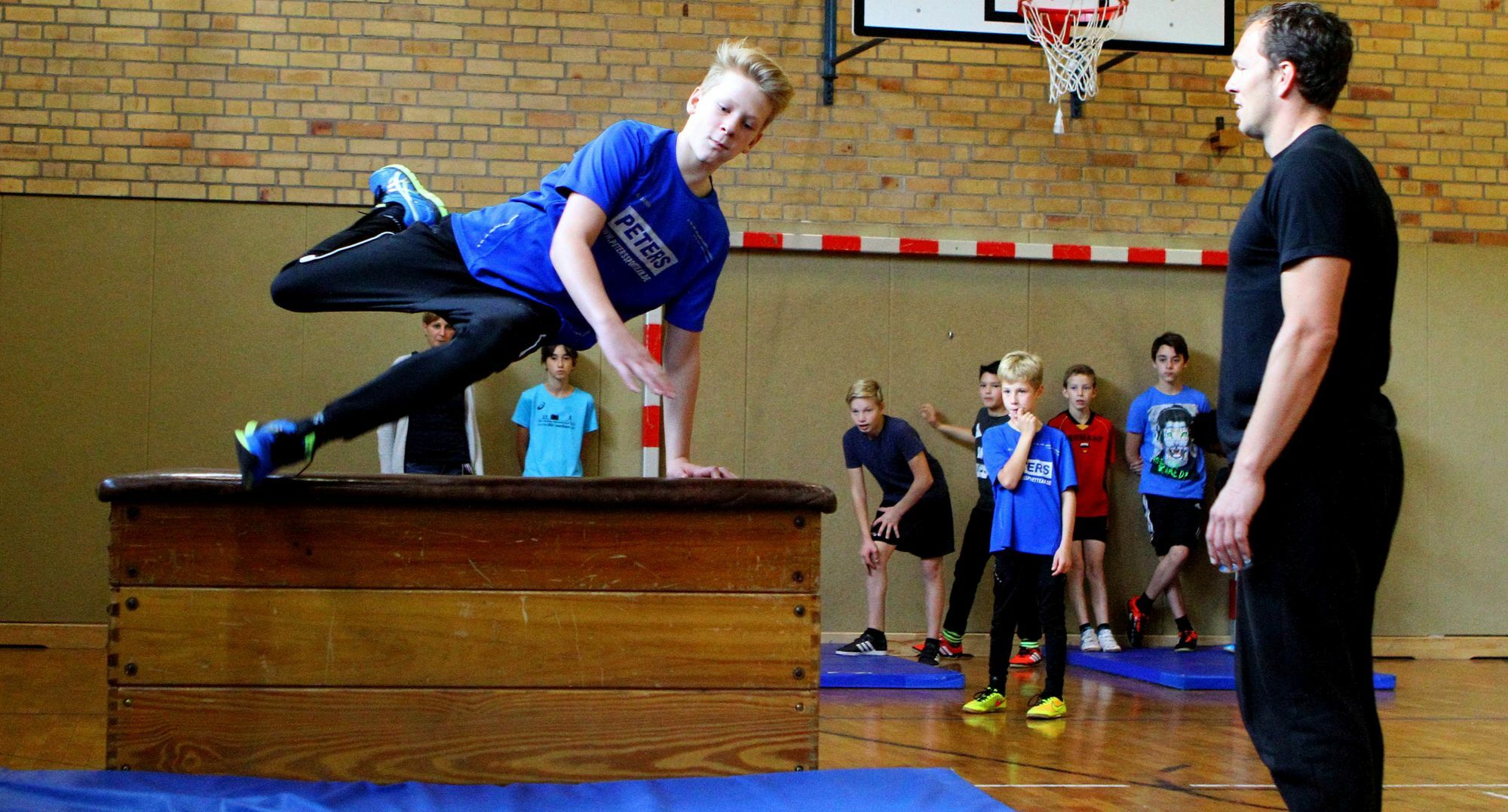 »Pacouring ist im Grunde genommen eine moderne Form des Turnens mit einfachen Tricks«, erklärt der 36-jährige Sportbegeisterte aus der Domstadt. Die Wurzel von Pacouring findet man in Frankreich. »Am Anfang war es eine kleine Gruppe die sich dieser Sportart annahmen. Heute gibt es eine anerkannte Ausbildung und Pacouring wird als eigenständige Sportart akzeptiert«, so Esser. Den Kontakt zu Esser hatte Helmut Peters zu Sonderschullehrer Michael Giefer aufgebaut. »Ich war damals für einen Sportartikelhersteller im Außendienst tätig und dabei hat Helmut den Kontakt aufgebaut«, erklärt Esser, wie der Workshop zu Stande gekommen war. Gespannt verfolgten die Schüler beim Workshop die Techniken für den Sprung über den Kasten. »Sie machen noch einige Fehler bei den verschieden Methoden, aber das ist egal. Die Hauptsache ist, dass sie mit Spaß und Eifer dabei sind«, so Esser. Für den Sportlehrer und Ausdauerathlet Michael Giefer war die Sportstunde mit Matthias Esser ein voller Erfolg: »Vielen Schülern fehlt es heute am Gefühl, wie man seinen Körper einsetzten kann. Beim Pacouring wird dieses Gefühl geschult und das ist sehr wichtig.«