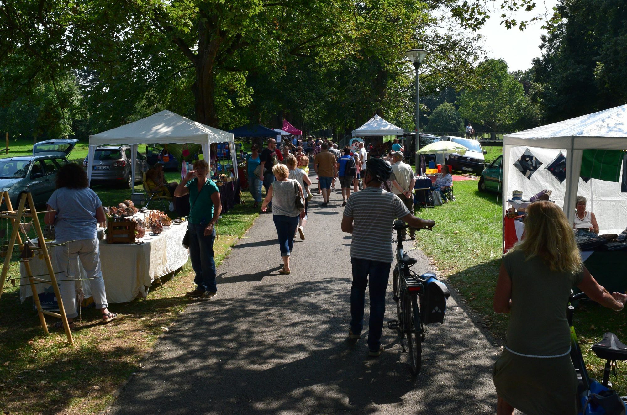 Bis 18 Uhr lockt ein abwechlungsreiches Programm die Besucher in die Erftauen. „Schütze die Natur“ lautet das Motto des neunten Sommerfestes „Treff Natur“. Auf der Wiese hinter dem Erfttreff wird es viele familienfreundliche Attraktionen und Mitmachaktionen rund um das Thema Natur geben. Dieses Mal sind unter vielen anderen das Jugendumweltmobil, die Biologische Station Euskirchen, der Landesbetrieb Wald und Holz, der Krewelshof und die Initiative „Euskirchen im Wandel“ dabei. Unter dem Motto „Schütze die Natur“ werden Infostände und Mitmachaktionen zum Thema Mülltrennung, Abfallvermeidung und Wasserverschmutzung angeboten. Wer möchte, kann sich in der weitläufigen Grünanlage natürlich noch weiter beim Bogenschießen, Klettern, Boxen, Boulen und Balancieren sportlich betätigen. Kunsthandwerkermarkt Ein weiterer Bestandteil des Sommerfestestesist der beliebte Kunsthandwerkermarkt entlang der Dr. Rütten-Promenade im Schatten der Bäume. Hier kann man vor Ort erleben, wie kreativ man mit Naturmaterialien arbeiten kann. Hier gibt es Ketten- u. Lederarbeiten, Drechselarbeiten, Steine, Wolle und Stoffarbeiten, Naturkräuterprodukte, Reitröcke, Holzspielzeug, Schmuck- und Filzarbeiten, Papierschmuck, Seifen, Schilder, Floristik, Gartendeko, Küchen- u. Wildkräuter, Brandmalerei und vieles mehr zu bestaunen und zum Mitnehmen. Auch beim Rahmenprogramm hat sich das Sachgebiet Grünflächen und Forsten der Kreisstadt Euskirchen als Veranstalter wieder etwas Neues ausgedacht: Der verrückte Obstkarren: Zum Markttag ist Melli Melone mit ihrem Obstkarren angereist. Mit dabei ist ihre lustige Gehilfin Hertha Huhn, sowie frisches Obst und knackiges Gemüse. Doch bald bemerkt sie, dass sie heute zu wenig Apfelsinen dabei hat und deshalb noch einmal nach Hause muss. Ein Theaterstück zum Thema Ernährung und Bewegung mit viel Musik, Stelzenlauf, Figurentheater, Bauchreden, Artistik und Jonglagen. Die Indianer kommen! Auf der großen Wiese vor dem Erfttreff zeigt die Kunstreitergruppe OMPAH e.V. Kunststücke am frei gallopierenden Pferd, die Handhabung indianischer Waffen sowie Drehlassotricks zu Pferd und zu Fuß. Uwe und Kinder: Von der ersten Auflage des Sommerfestes an dabei ist der Kinderliedersänger Uwe Reetz. Auch in diesem Jahr kommt er mit seinem Programm “Uwe und Kinder“. Die Kindermusik ist sein Herzensprojekt sagt er selbst von sich. Mit seiner Musik erklärt er seinen jungen Zuhörern die großen und kleinen Dinge des Lebens. Für das leibliche Wohl sorgen Anbieter mit Naturpizza, Crepes, Ofenkartoffeln, Hamburger, Getränkestand, sonstige Schlemmereien wie Kaffee und Kuchen.