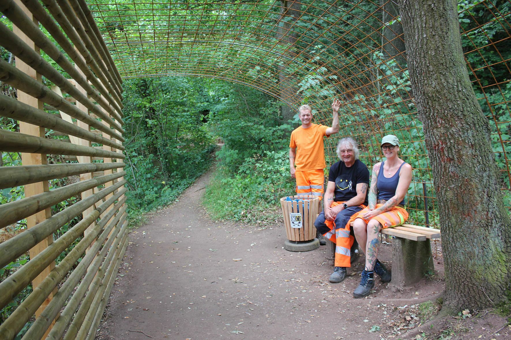 Schon jetzt zeige die Umgestaltung Wirkung, die neuen Mülleimer würden genutzt und der Platz bliebe sauber. Das Rankgitter ist eine Eigenkreation des Bauhofs, es soll nun bepflanzt werden: »Dort werden blühende, heimische Rankpflanzen gesetzt, die im Laufe der Zeit den kompletten Rundbogen bedecken sollen«, berichtet Bauhofleiter Kaudel.