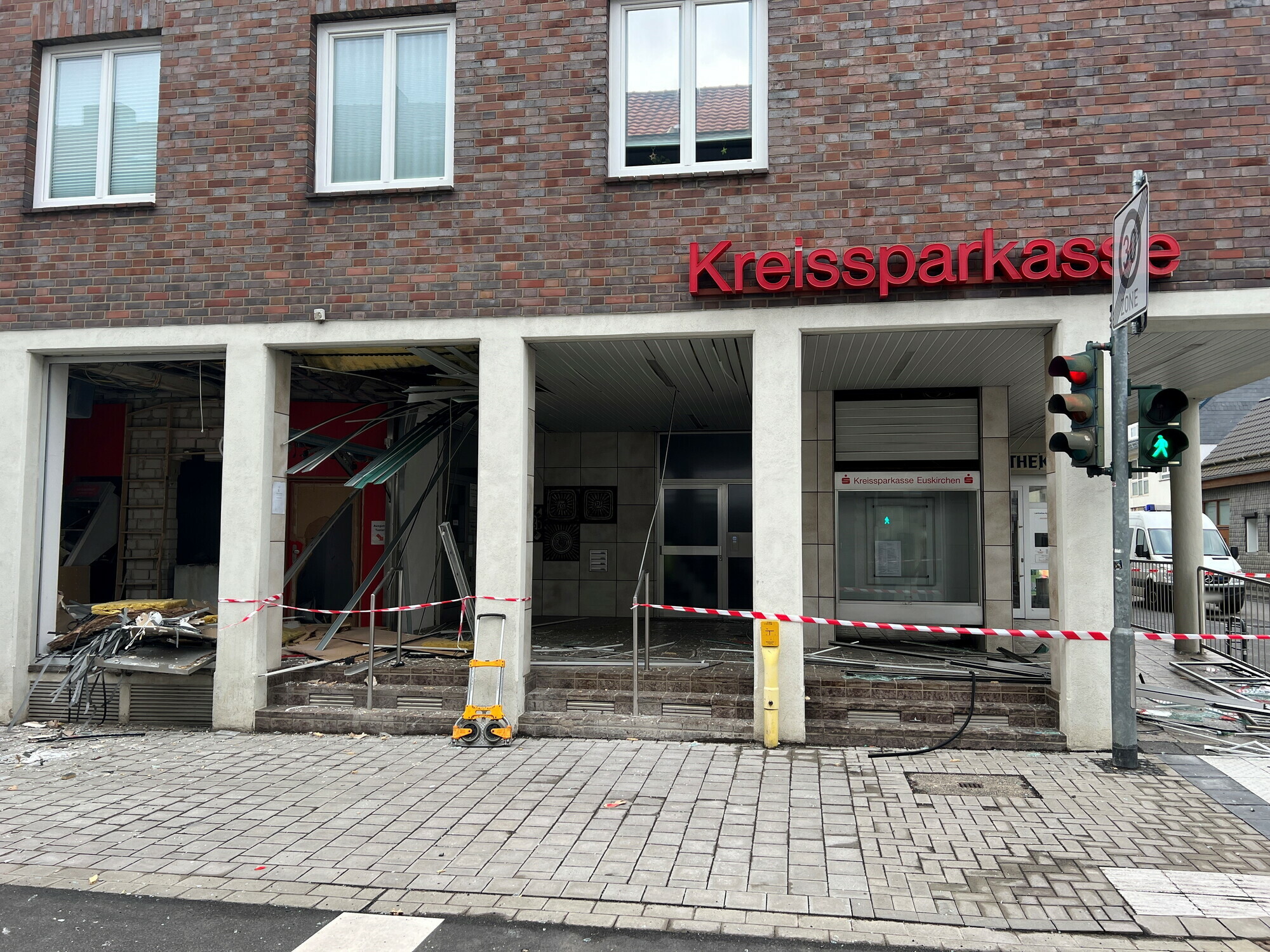 In der Nacht zum heutigen Mittwoch, 20. Dezember, haben mehrere Unbekannte in Euskirchen einen Geldautomaten der KSK-Filiale in Euskirchen-Kuchenheim gesprengt. Anwohner hatten gegen 3.15 Uhr Explosionsgeräusche auf der Kuchenheimer Straße gehört und den Notruf gewählt.