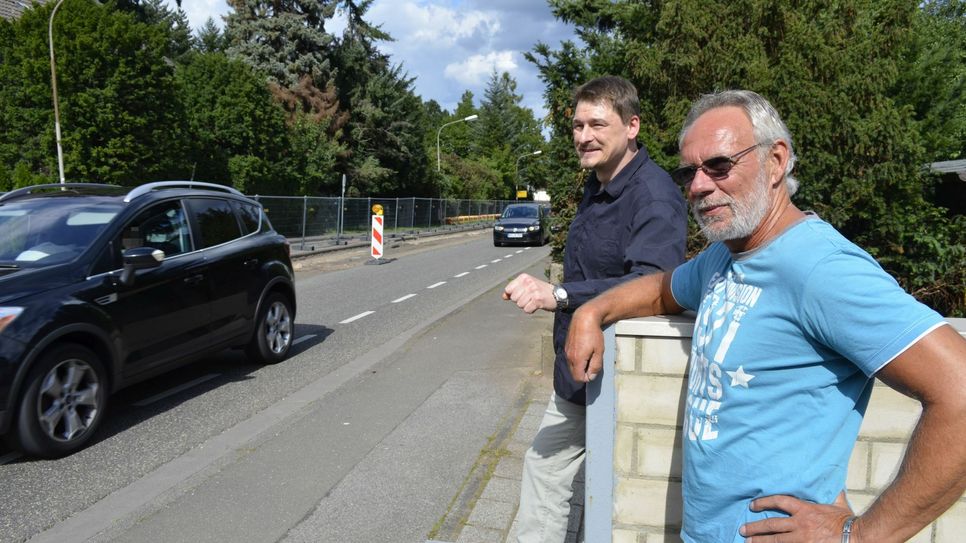 »Keiner redet mehr von der längst fälligen Umgehungsstraße um Roggendorf, Weißenbrunnen und Denrath«, meinen nicht nur Stefan Kühl und Klaus Pyritz (v.li.). mn-Foto