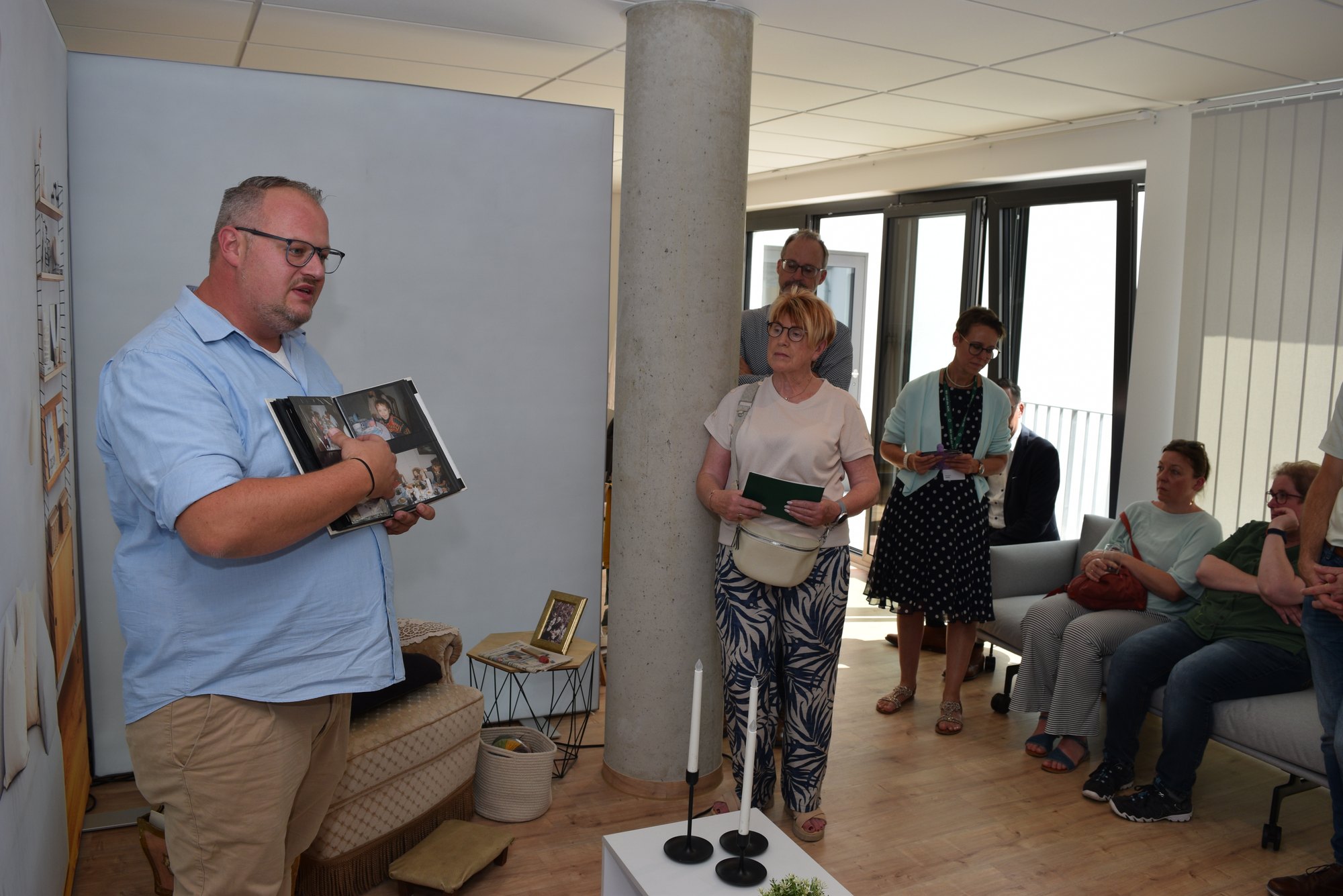 Durch die Ausstellung führte Sebastian Schmitz. »Das Ziel soll es natürlich sein, Betroffenen ein möglichst langes selbstständiges Leben im eigenen Zuhause zu ermöglichen«, sagte Sebastian Schmitz von der AOK Servicestelle Demenz bei einem Rundgang durch die Ausstellung. Diese zeigt, dass auch einfache Dinge helfen können. So sollten beispielsweise weiße Teller auf einer weißen Tischdecke vermieden werden, da auch farbliche Kontraste eine Erleichterung für Demenzkranke Menschen sein können. Auch ein Streifen rotes Isolierband, der die Ränder eines weißen Waschbeckens markiert, kann für mehr Kontrast sorgen. Transparente Vorratsbehälter in der Küche, bei denen man auf den ersten Blick erkennt, dass beispielsweise Kaffee enthalten ist, können eine Hilfe sein. Gewohnte Gegenstände wie ein vertrauter Sessel oder ein seniorengerechtes Tastentelefon sind in der Ausstellung zu sehen. Manchmal könne es zudem nützlich sein, Pflegeartikel wie Cremes in die seit Jahren gewohnte Cremedose umzufüllen. »Vertrautes ist sehr wichtig, um im Alltag nicht mit noch mehr unbekannten Situationen konfrontiert zu werden«, erklärte Sebastian Schmitz.