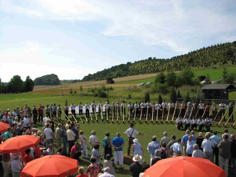 Im Anschluss an die Wanderung können die Besucher unter anderem eine liebevoll dekorierte Wacholder-Schinkenplatte mit einem Gläschen Lampertstaler probieren oder Kaffee und Kuchen genießen, parallele musikalische Leckerbissen inbegriffen. Es spielt das »Wacholder-Blech« auf. Ab 18 Uhr folgen diverse Einzelvorträge der angereisten Alphorngruppen, ab 21 Uhr lassen es »Die Schönwälder« mit ihrer Abendgaudi krachen. Der Sonntag, 13. August, startet um 9 Uhr mit einem Wortgottesdienst, zelebriert von Willibert Pauels - besser bekannt als »Ne bergische Jung« und unter Mitwirkung der Alphornbläser.