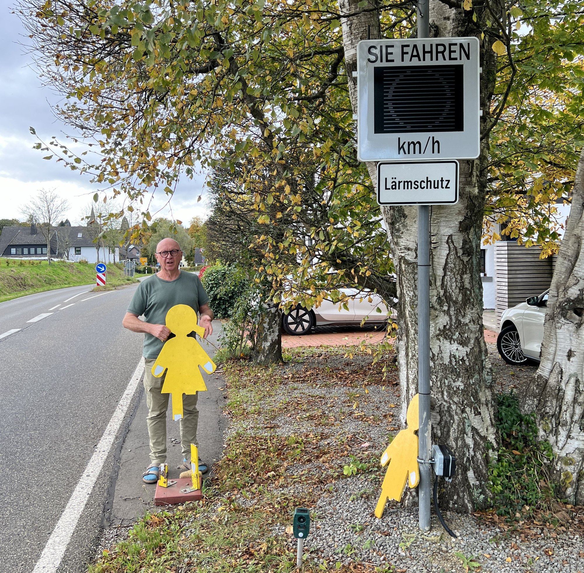 Hermann Klöser wurde selbst aktiv. Am Sportplatz und an der Nettersheimer Straße stellte er Kinderfiguren auf, um die Fahrer zu sensibilisieren und zu bewegen, auch aus Lärmschutzgründen auf die Bremse zu treten. Außerdem schaffte er auf eigene Kosten eine Messanlage an, die den Verkehrsteilnehmern die gefahrene Geschwindigkeit anzeigt und aufzeichnet. Statt Einsicht erlebt er aber bereits zum dritten Mal Vandalismus: Die Kinderfiguren wurden einfach mutwillig umgeknickt. »Wer macht denn sowas«, schüttelt Hermann Klöser den Kopf. Er würde sich wünschen, dass der Kreis Euskirchen seine mobile Messanlage vor Ort zum Einsatz bringt, gesehen habe er sie bislang allerdings noch nicht ...